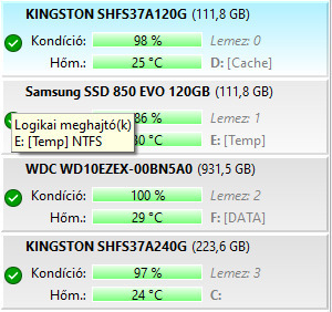 SSD/HDD: 240GB Kingston + 120GB Kingston + 120GB Samsung SSD-k és egy 1TB-os WD Blue HDD