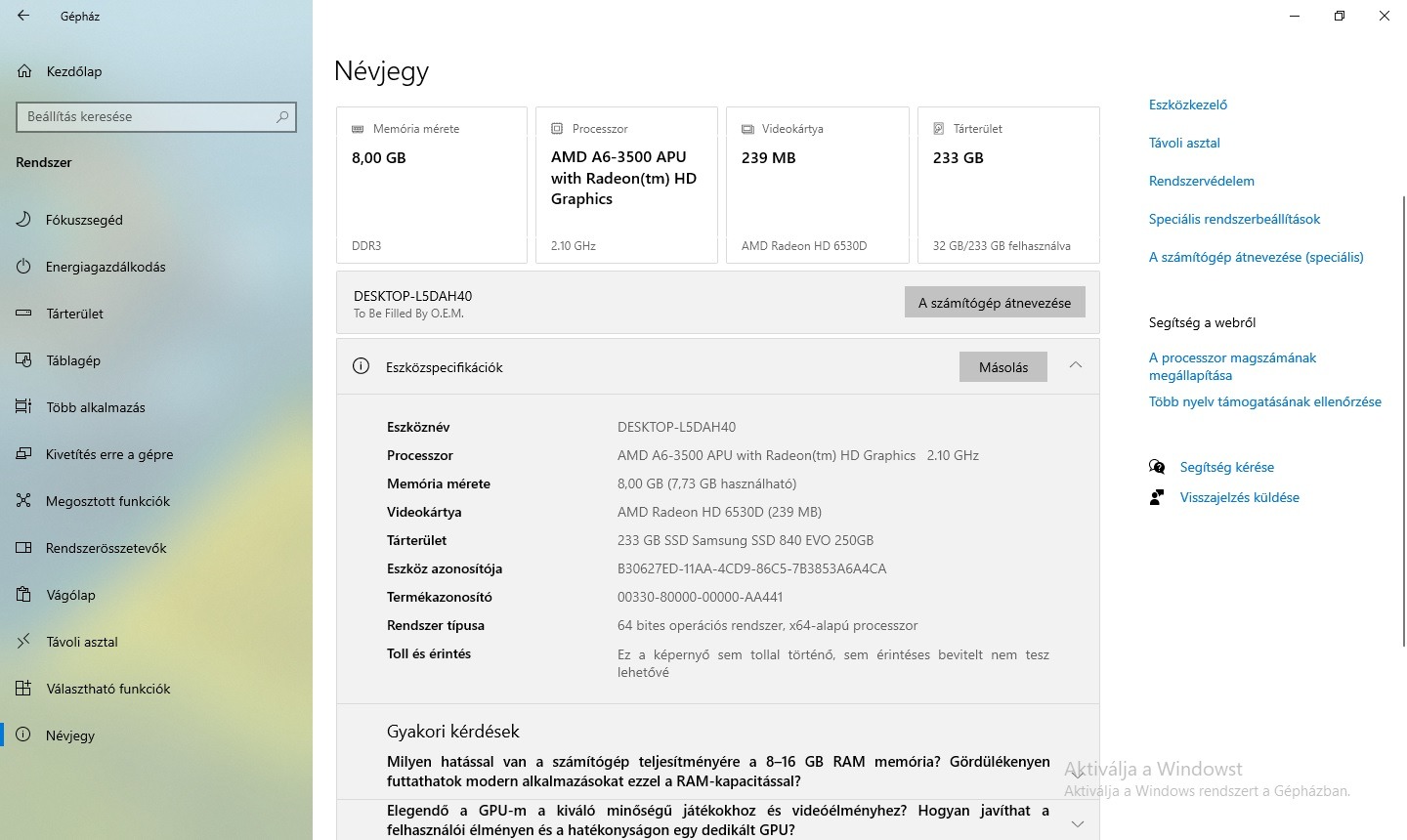 Nincs Windows license - Windows 10 pro telepítve