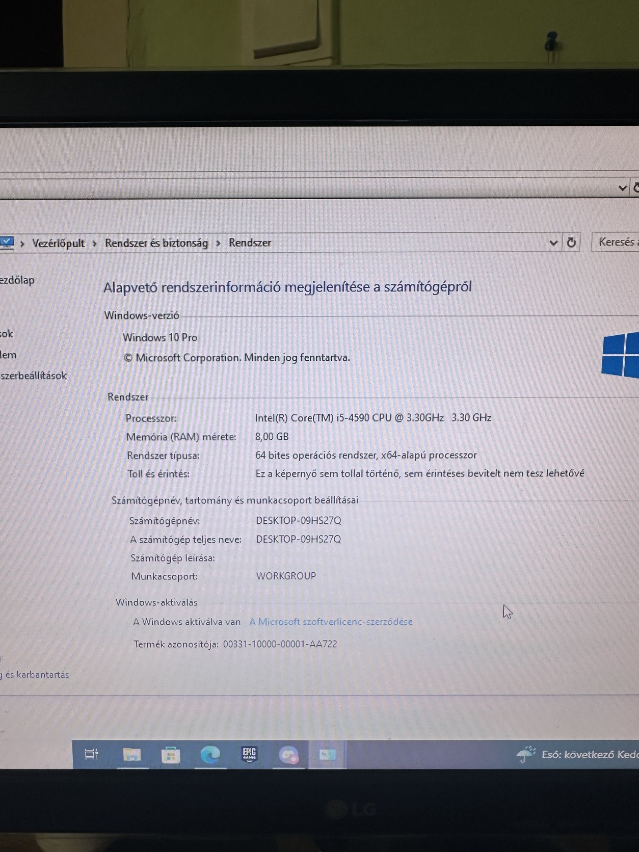 Op. Rendszer: Windows 10 Professional