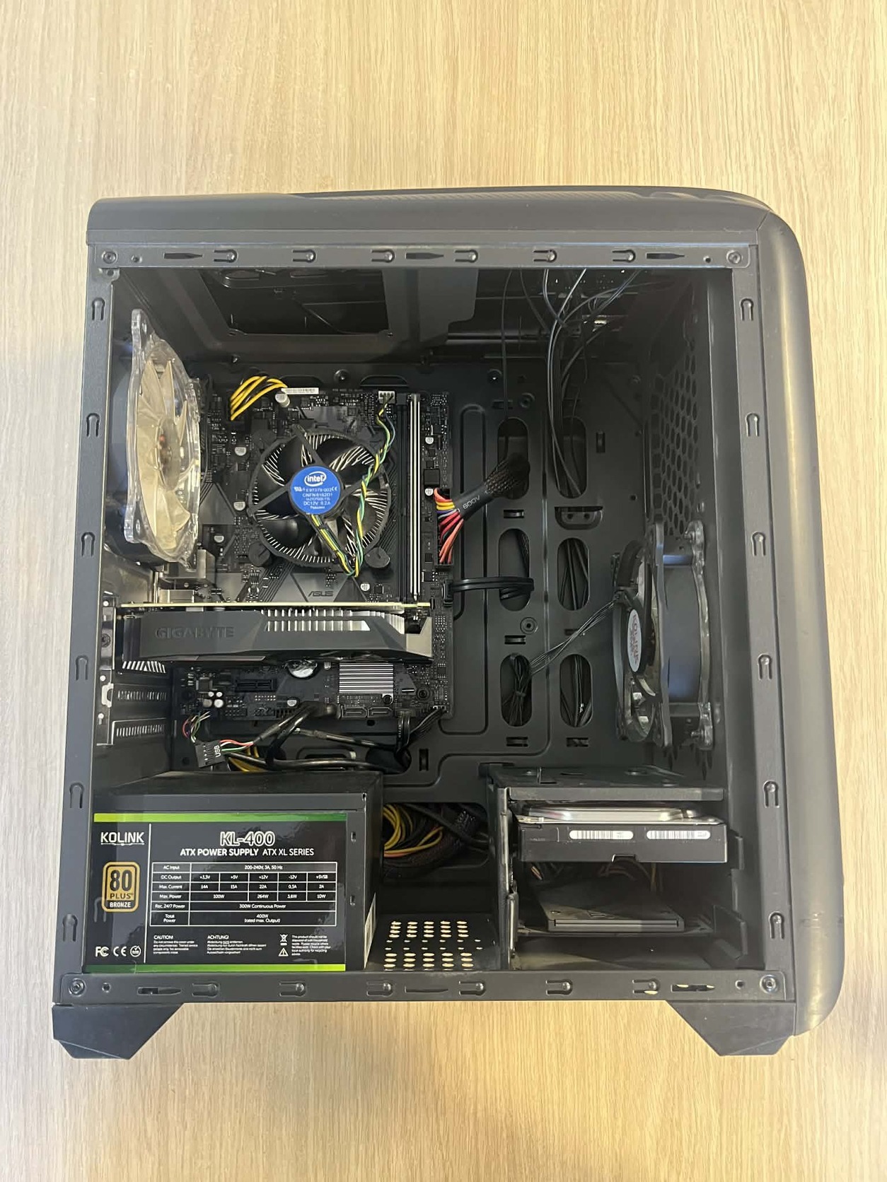 Asus Prime H310M-K, Intel i3 8100, Adata 8gb 3000mhz, Gigabyte 1050 2gb, Toschiba HDD 1tb, Kingstone 480 SSD, Kolink 400 ATX