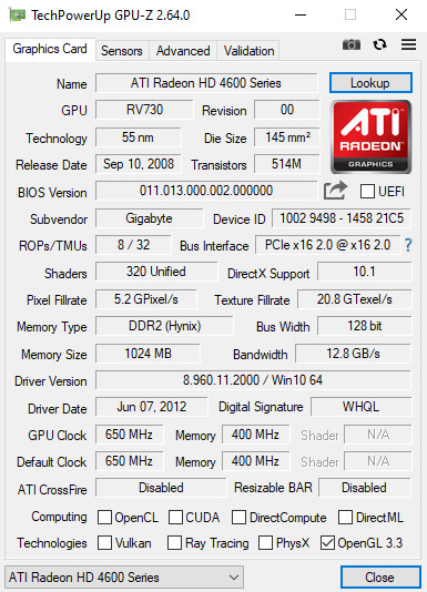 ATI Radeon HD 4650 (Gigabyte) 1GB