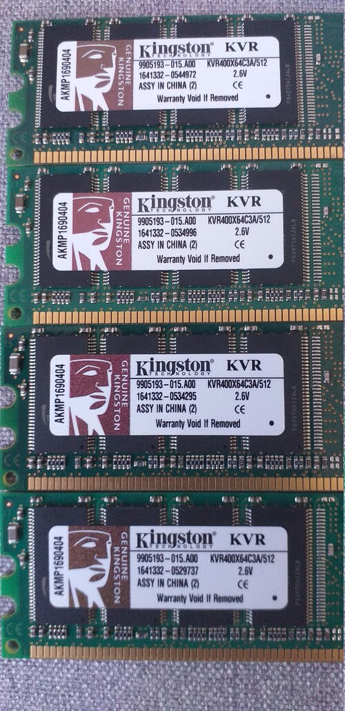 Eladó több darab Kingston KVR400X64C3A/512 512 MB méretű DDR1 DDR400 memória modul.