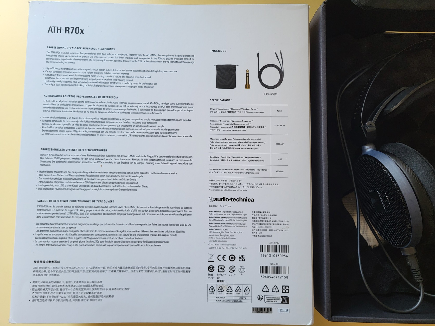 Audio-Technica ATH-R70x fejhallgató dobozában, összes gyári tartozékával eladó. (A hordtáska 1 percig sem volt használva, csak a fotó erejéig vettem ki a dobozából.)