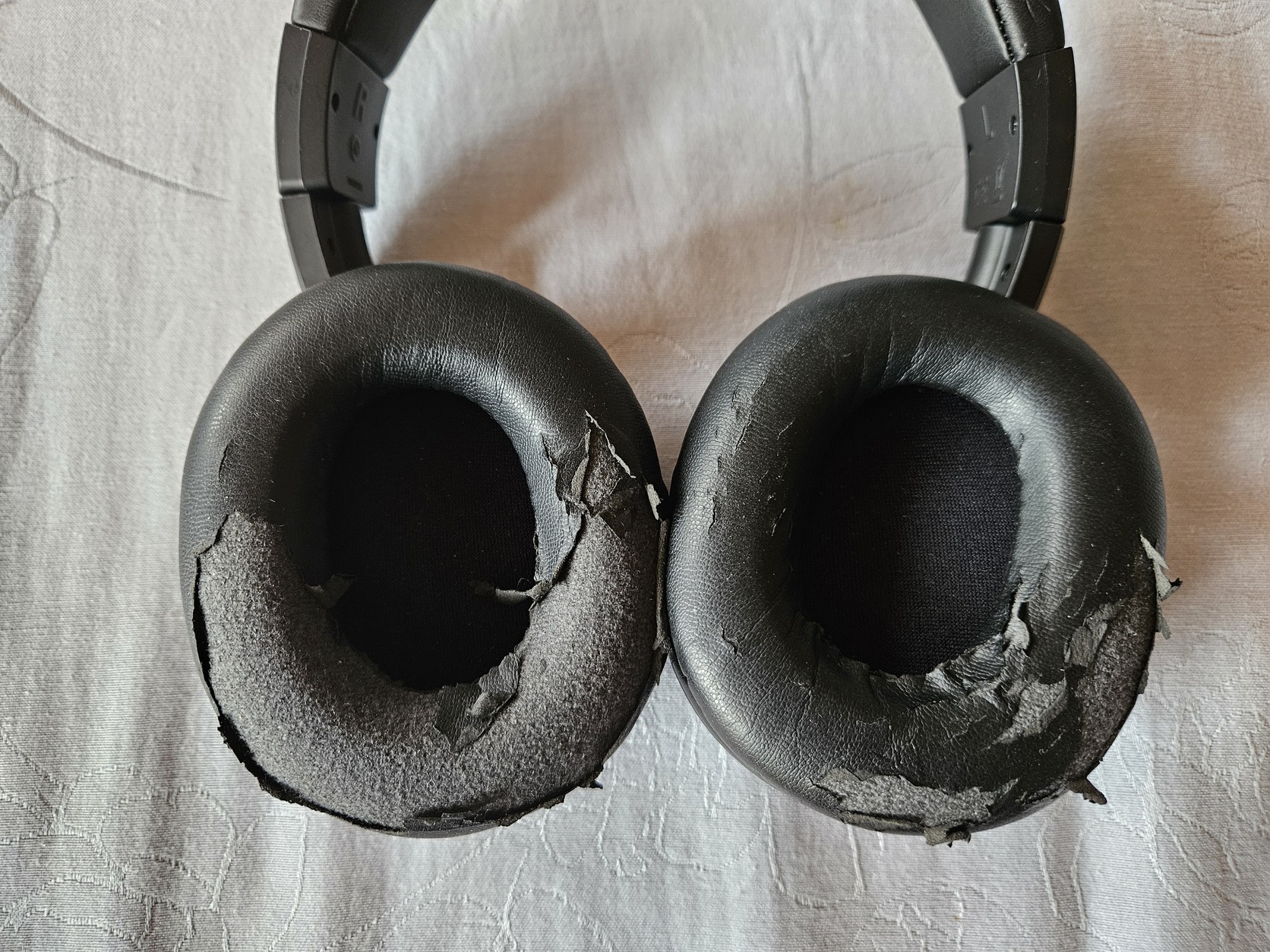 A fülpárnák borítása elkezdett lekopni (elsősorban a 3. képen látható), ezért ilyen alacsony az ára.