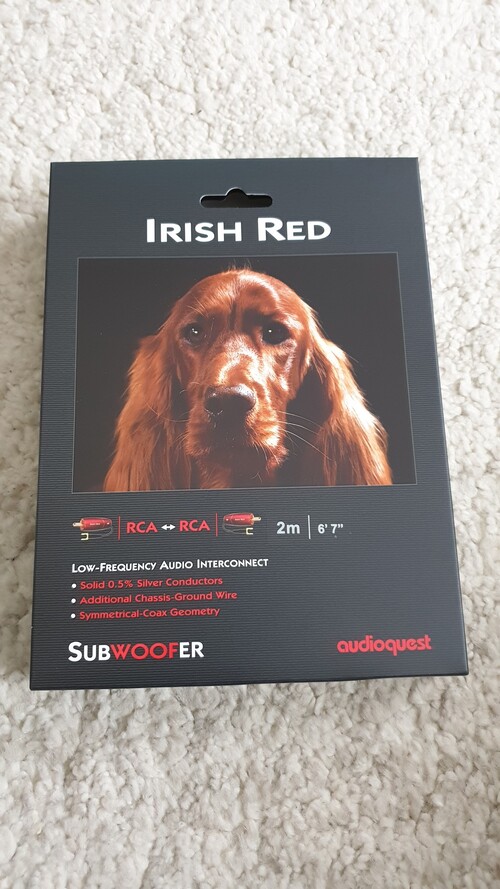 Újszerű állapotú, 2 méteres Audioquest Irish Red subwoofer kábel eladó!