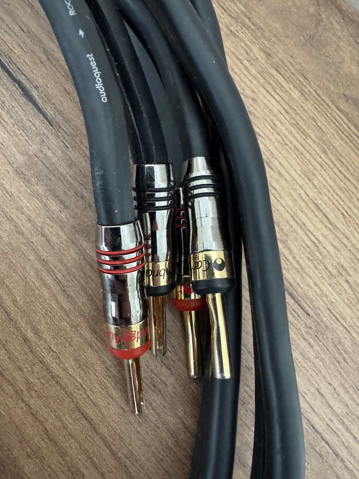 Eladó a címben említett hangfalkábel 2X1,25 méter hosszban (banándugókkal 131 cm az össz hosszúsága). A banándugók a képek alapján Cambridge Audio AUD300 elméletileg habár túl sok információt nem találtam róluk (papíron értékük 10€/pár). Hozzám már így került. Én túl nagy értéket nem társítok mellé, a kevés rendelkezésreálló információ miatt.