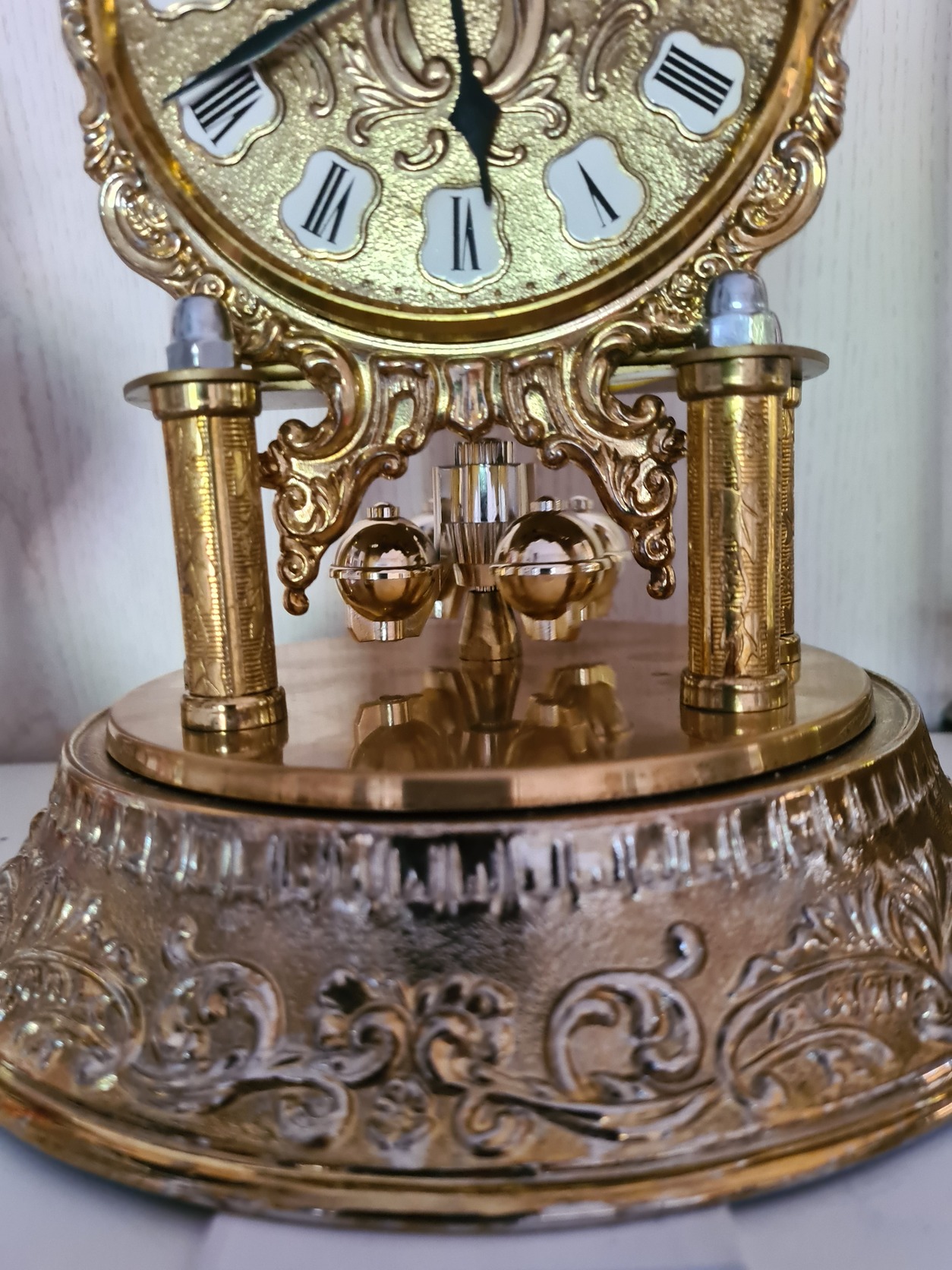 Sajnos a műanyag meghajtó szerkezet az eredeti réz ingát nem bírja forgatni, ezért műanyag ingával lett helyettesítve.