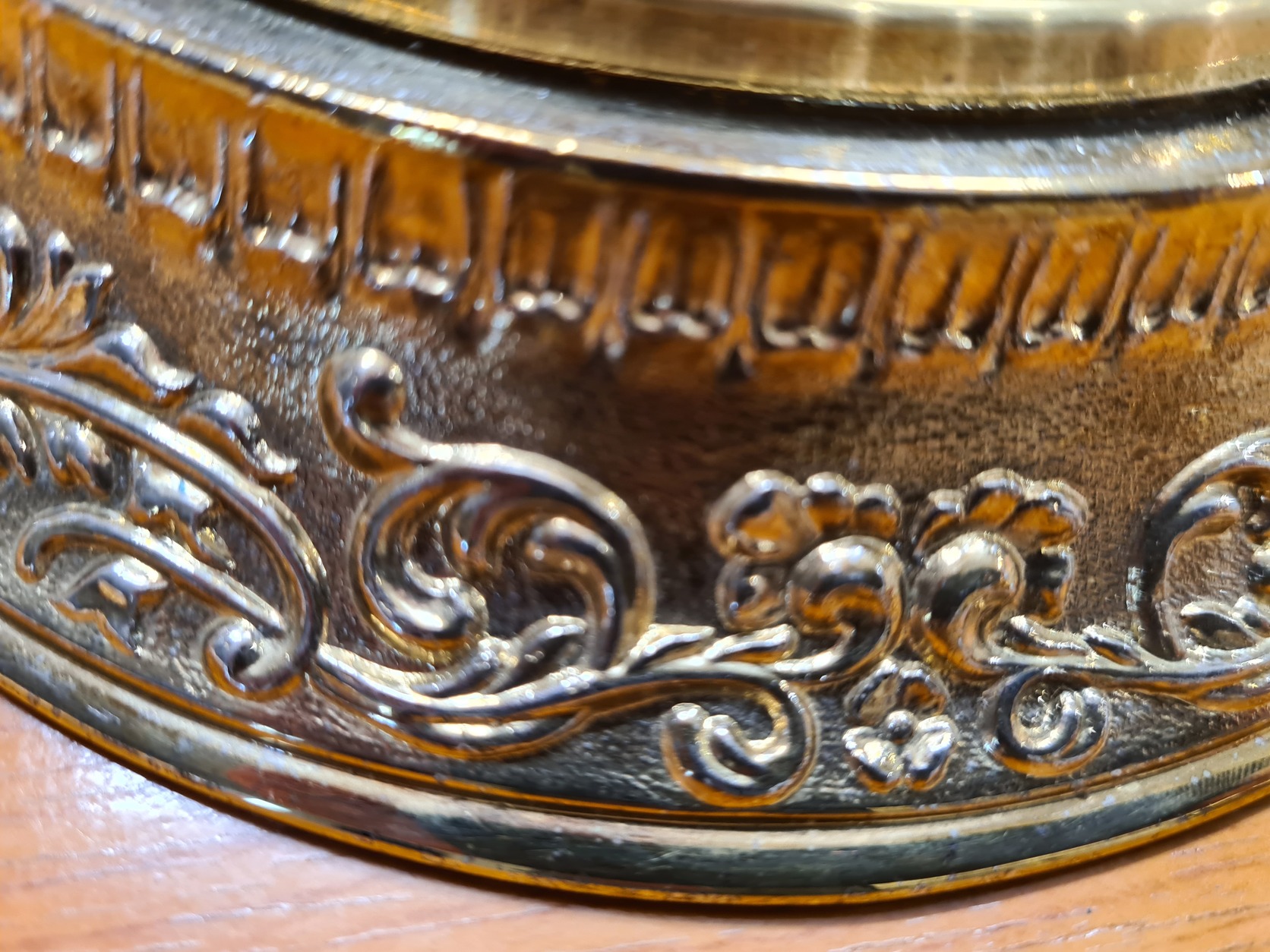 Gyönyörű kidolgozású a talp és a szintén réz, vagy réz ötvözet óralap. Az óra késését/sietését az óra hátulján található vízszintes nyílásban lévő karral lehet állítani.