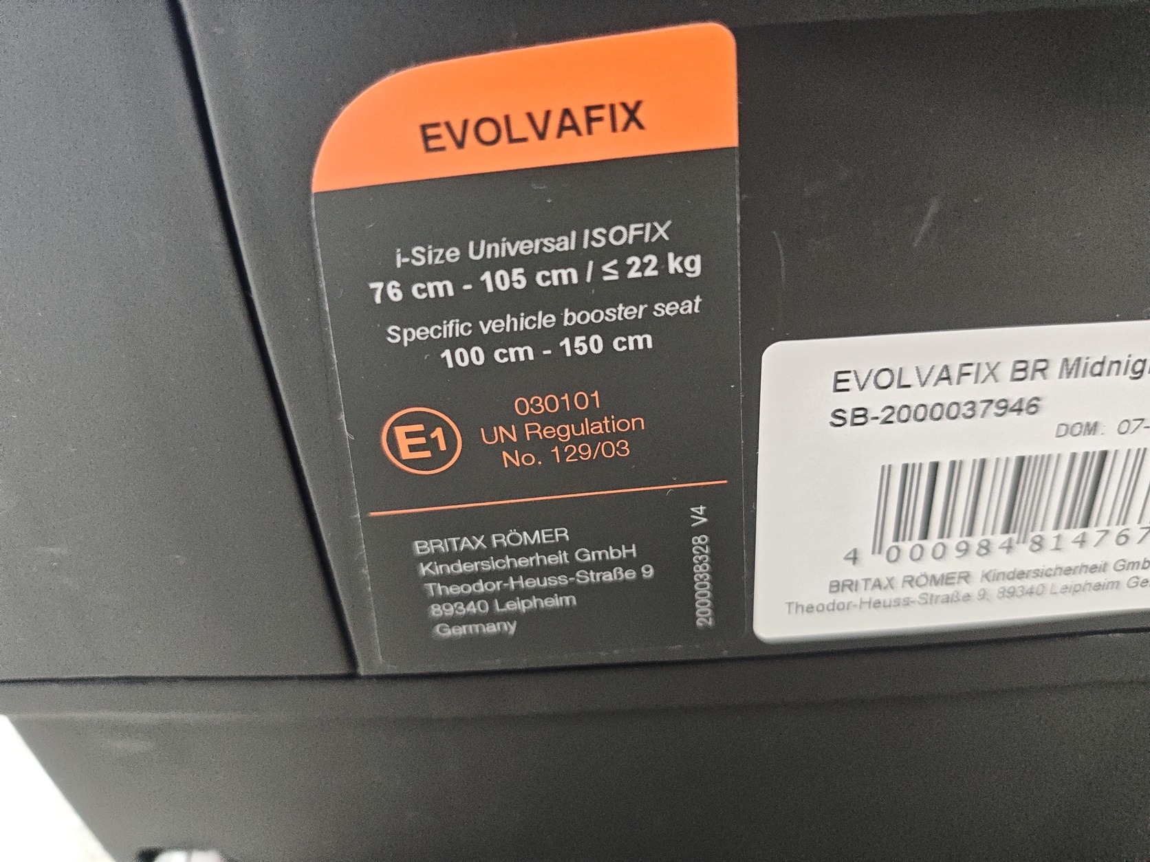 Britax Römer -Evolvafix 76-150 50000ft