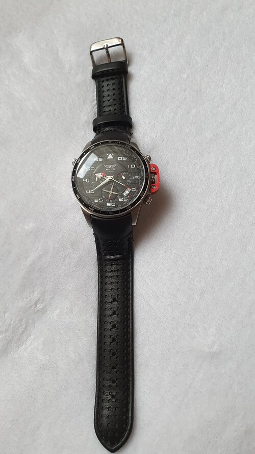 Eladó Aviator F series avw1265g149 tipusú karóra. Robosztus acél tokozás, Japan Seiko szerkezet, kristály üveg, valódi bőr szíj. Nagyon jó álapotban van, kiveve a hátlapon lévő karcolás. Friss elem. Doboz, papírok, nincsenek mivel ajándékba kaptam. Ezért is adom el mert számomra nagy méretű, 44es. Ujjonan 60000ft volt, csak személyes átadás. További infók itt https://www.kechiq.com.au/aviator-watch-avw1265g149-103322