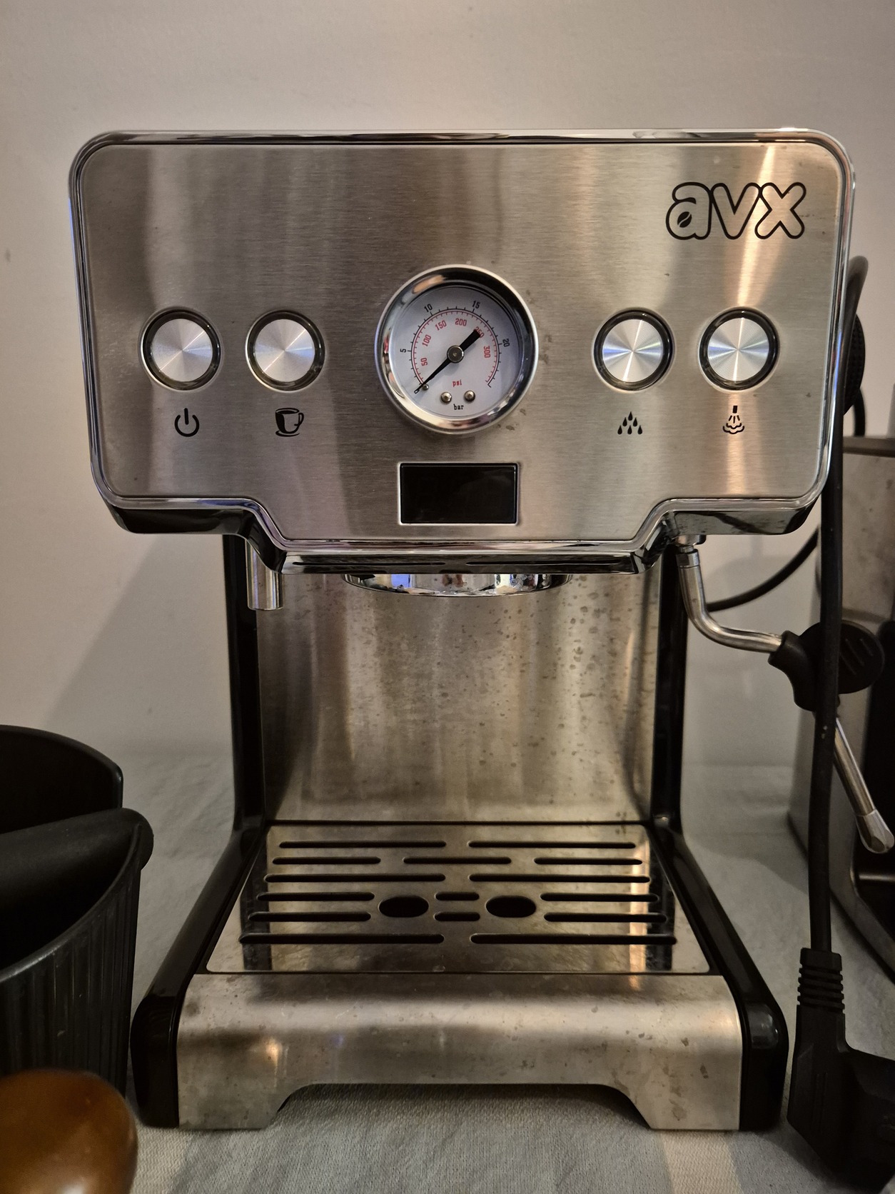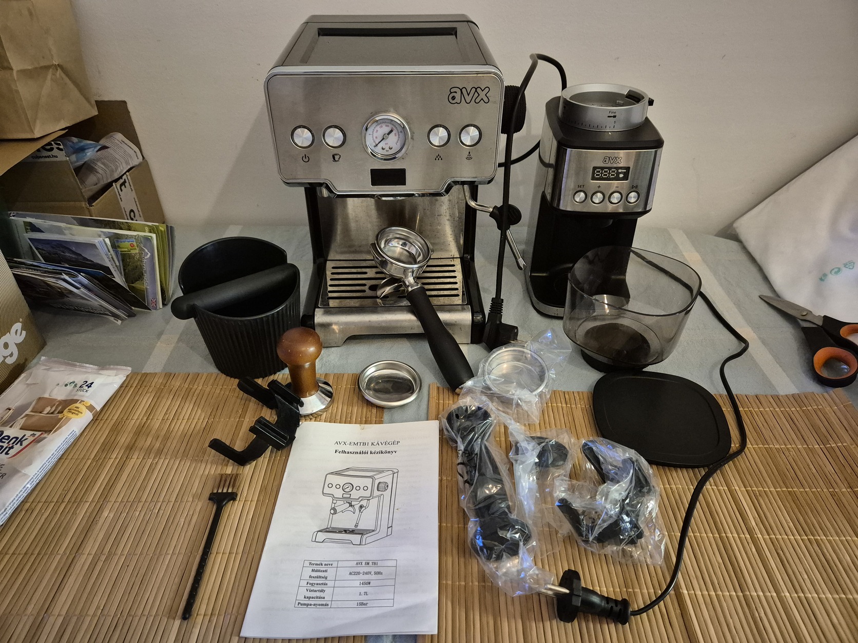 Eladóvá vált 2023. májusában vásárolt (már nem garanciális) AVX EM TB1 kávégépem és a vele csomagban vett AVX CG5 kávéörlőm a képeken látható állapotban, tartozékaival (tamper, knockbox).