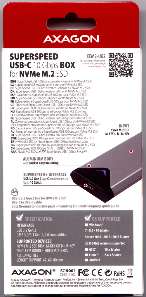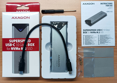 vadonatúj Axagon EEM2-UG2 USB-C 3.2 Gen2 M.2 NVMe SSD külső alumínium ház, USB Type-C