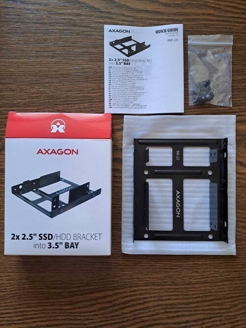 Az AXAGON RHD-225 fémkeret két 2.5" merevlemez vagy SSD rögzítésére szolgál egyetlen 3.5" méretű helyen a számítógépházban.
