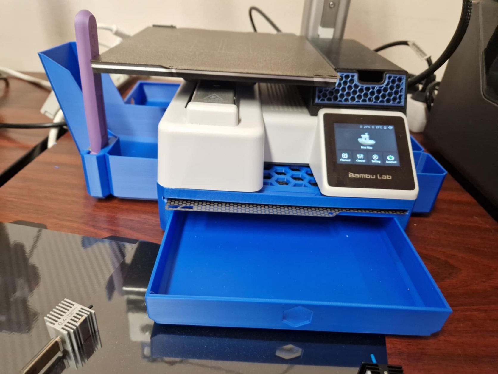 Eladó egy Bambulab A1 mini 3D nyomtató. Kb 1 éves, nagyon perciz kis nyomtató, nagyobbra váltás miatt eladó. Folyamatosan karbantartott gép, a gyári kiegészítőkön kívül van hozzá több fúvóka: 0,2mm, 0,6mm. és 3db plusz nyomtatólap: 1db utángyártott méhsejt mintás és 2 db új eredeti Babmulab: carbon mintás és csillag hologramos.Néhánya nyomtatott kiegészítő van rászerelve: sok fiókos alátét nyomtatólap tárolóval, törésgátlók és kábel vezetők. Ajándék 1 kg bontatlan PLA