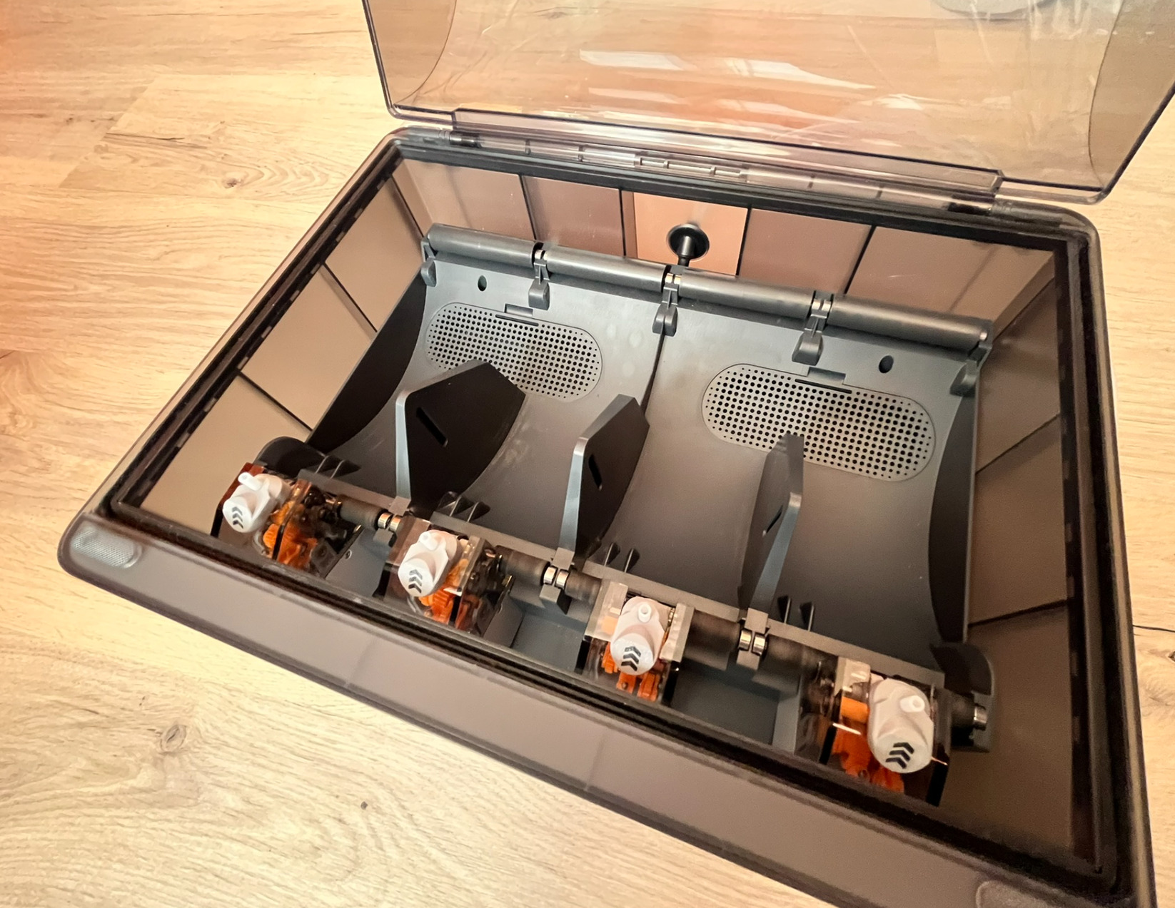 Kiváló állapotban, hibátlanul működik, 540 üzemórát ment. A fedele új, fóliás, mert az "eredetit" egy szilárdtest szárítóval használtam (vágtam rá egy lyukat) ezért eladás előtt újra lecseréltem. Ha valakit érdekel, akkor a Rosahl MDL-3 szárító és a plusz fedél +90 ezer forint. A filament bevezetőkön tefloncsöves megvezetés van, hogy ne kopjanak. Személyes átvétel Esztergom környékén, foxpost, packeta, posta előre utalás után a vevő költségére.
