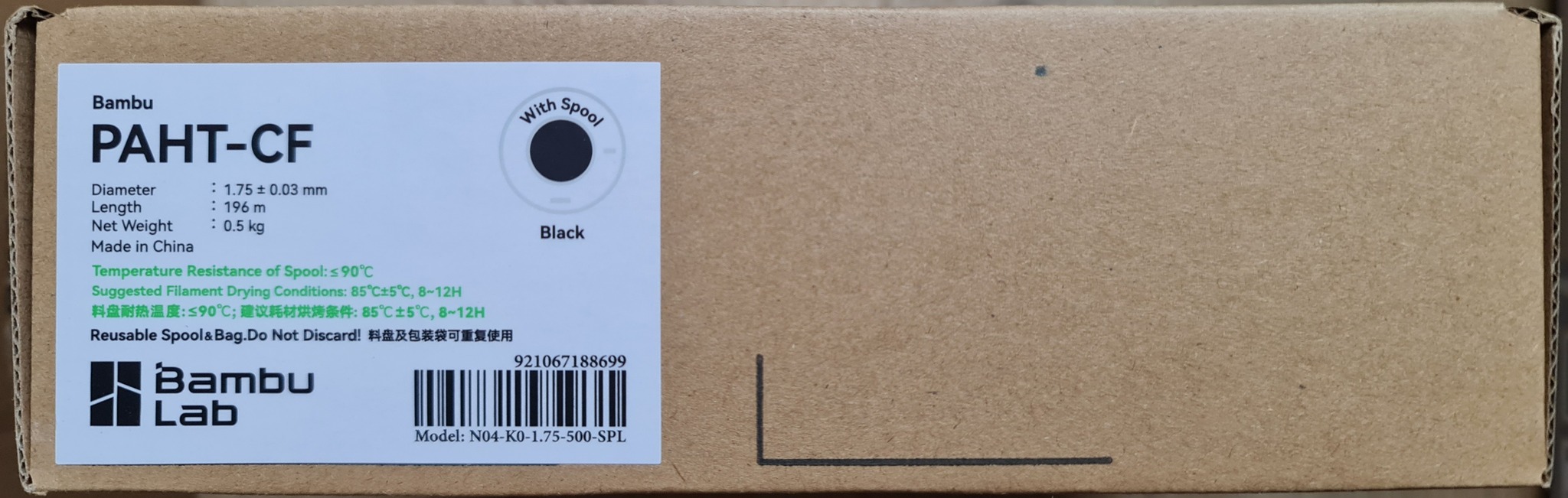 Bambulab PAHT-CF fekete 0,5kg 18.000ft