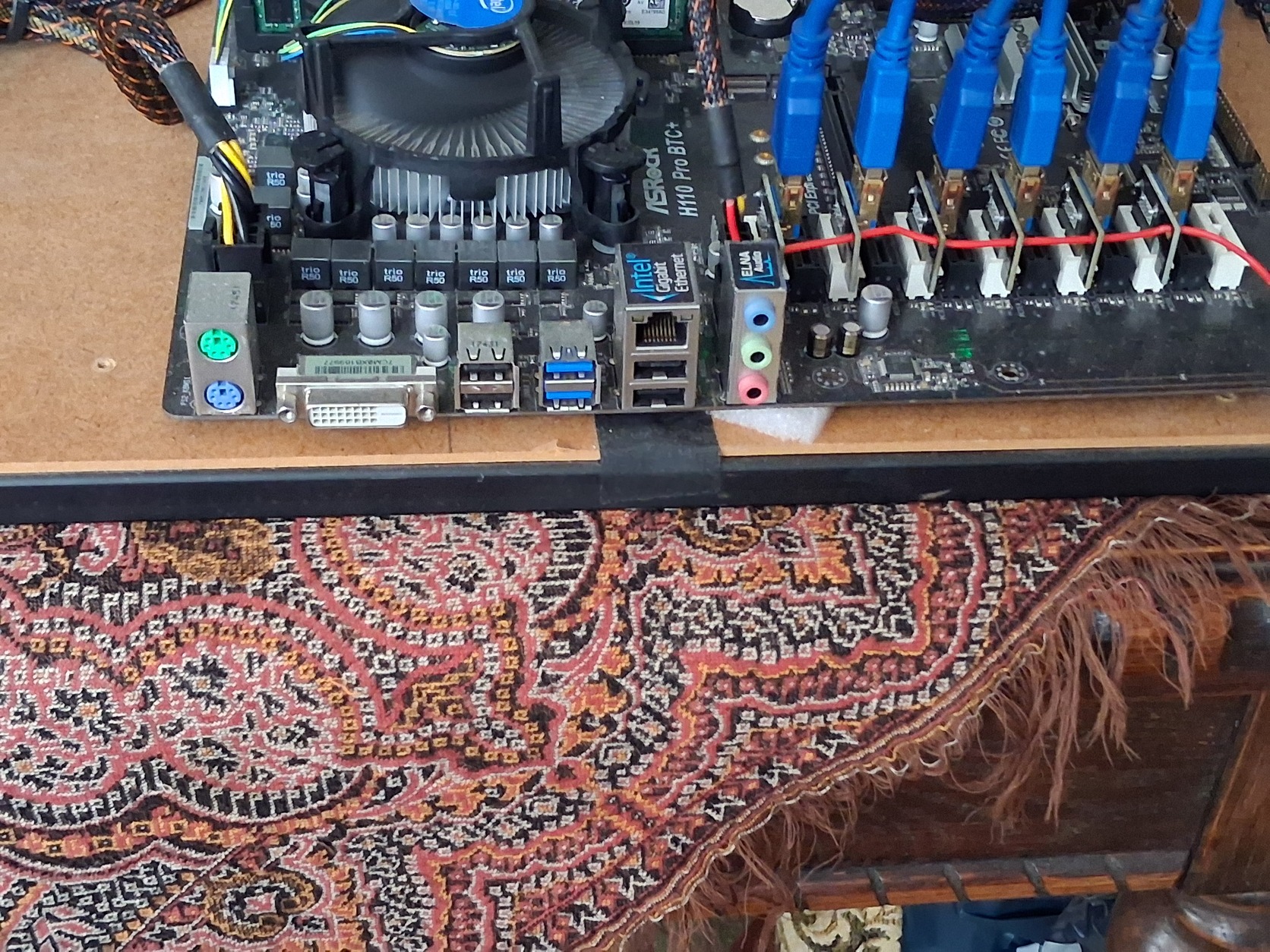 Alaplap: ASRock H110 Pro BTC+ – kifejezetten bányászati célokra tervezve.