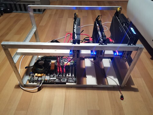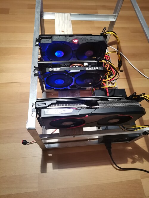 Eladó 3 kártyás stabil bányászgép 420W-os fogyasztással.