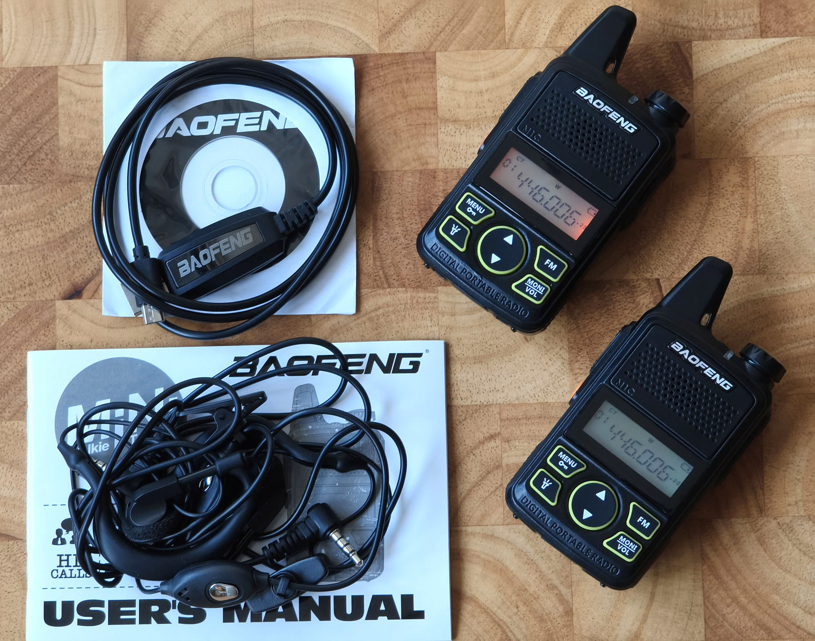 Programozó kábellel és fülhallgatókkal. Az ár a párra értendő.