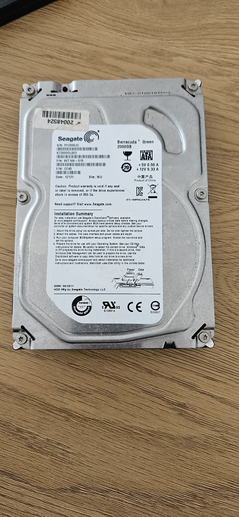 Eladó a képen látható Barracuda Green 2TB 64MB SATA2 ST2000DL003.