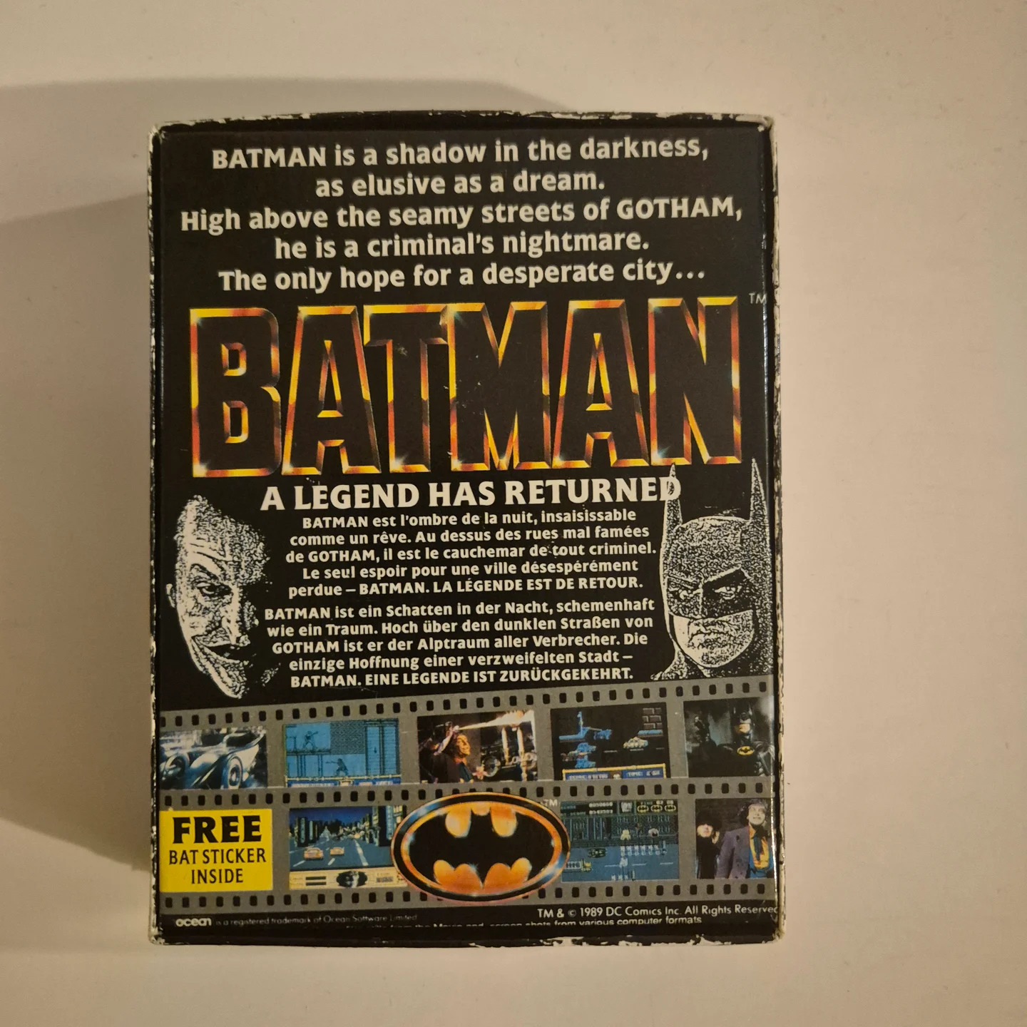 Batman: The Movie videójáték Commodore 64/128 platformra, eredeti dobozban, kazettán, az Ocean Software kiadásában.