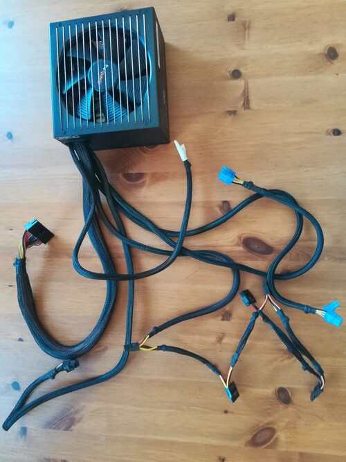 Egy apró hiányossága van, az egyik ág, amin 2db SATA és 3db Molex csatlakozó lenne, hiányzik. A képeken látható.