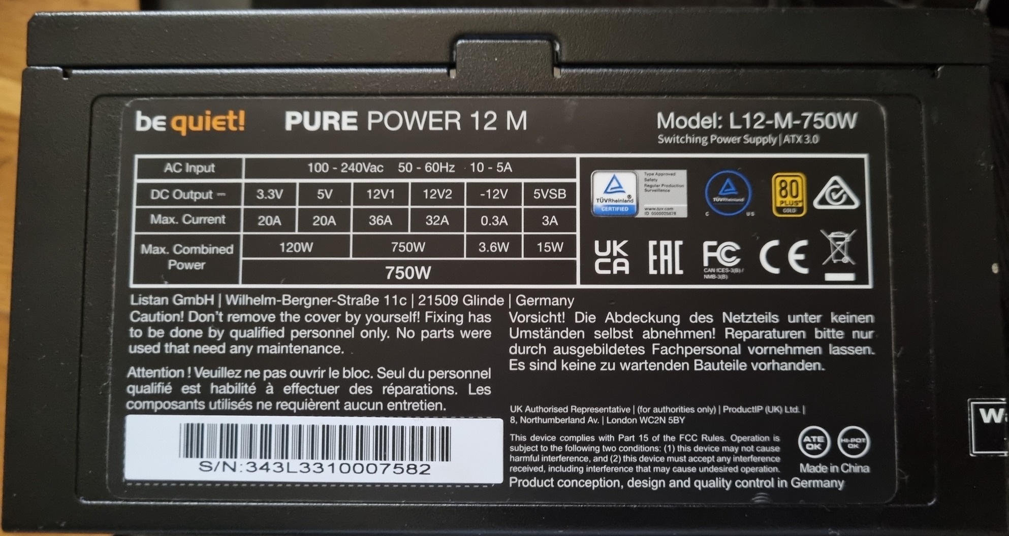 BE QUIT 12M 750W 80 PLUS GOLD