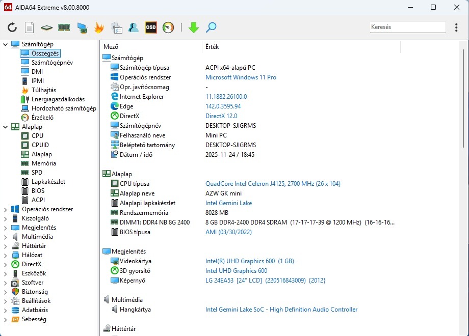 Eladó szép állapotú, csendes és halk Beelink GK mini típusú mini PC. Intel J4105 4 magos processzor, 8Gb DDR4 RAM, 512 Gb M.2 Sata/NGFF SSD, Wifi/Bluetooth modul a specifikáció, USB 3.0, HDMI, 3.5 mm Audio, Gigabites Ethernet csatlakozó található rajta. Jár hozzá a tápegysége és HDMI kábel is. Teszt található róla bőven az interneten, a fogyasztása 18 W alatt marad terhelés alatt is. Windows 11 Pro x64 újratelepítve és vásárolt licenc, korlátlanul újratelepíthető. A Windows 11 támogatja a processzort és a Mini PC-t, tehát mindenféle mókolás nélkül újratelepíthető, Windows 11 kompatibilis PC. Próbagarancia 1 hét, átvehető Újpesten és a szomszédos kerületekben.