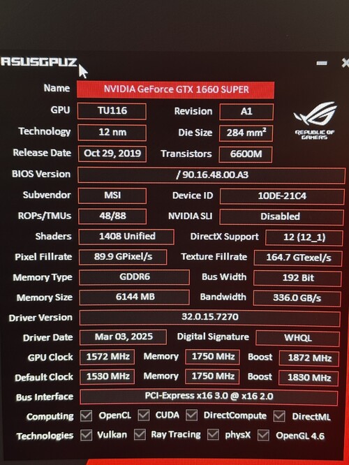 VGA: MSI Geforce GTX 1660Super GDDR6 6GB + doboz