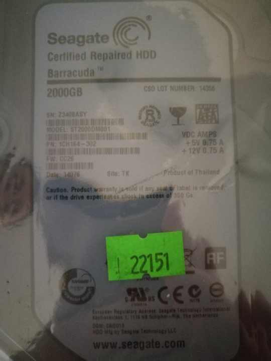 Seagate 2TB 64MB 7200rpm 64MB SATA3 ST2000DM001 certified repaired= 19000/db