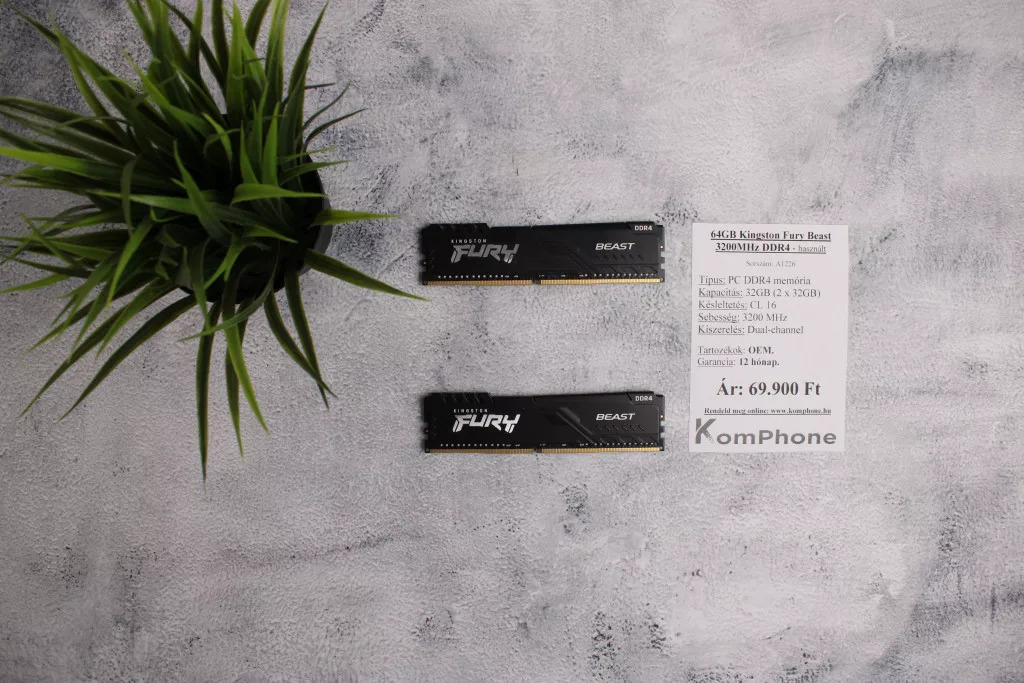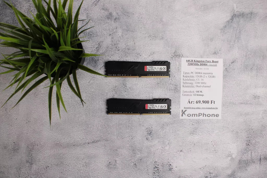 BESZÁMÍTÁS! 64GB(2x32GB) Kingston Fury Beast 3200MHz DDR4 memória garanciával hibátlan működéssel