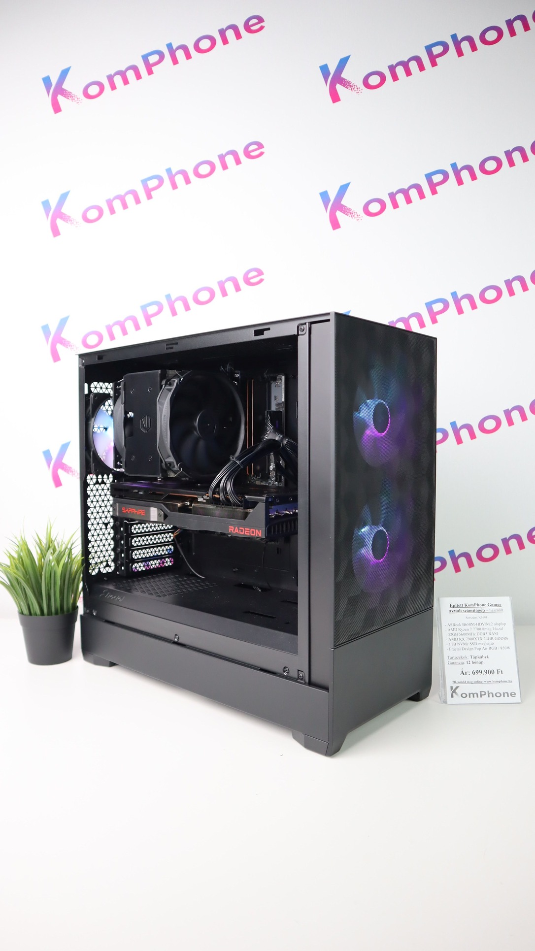 BESZÁMÍTÁS! ASRock B650M R7 7700 32GB DDR5 1TB SSD RX 7900 XTX 24GB Fractal Design Pop Air RGB 850W