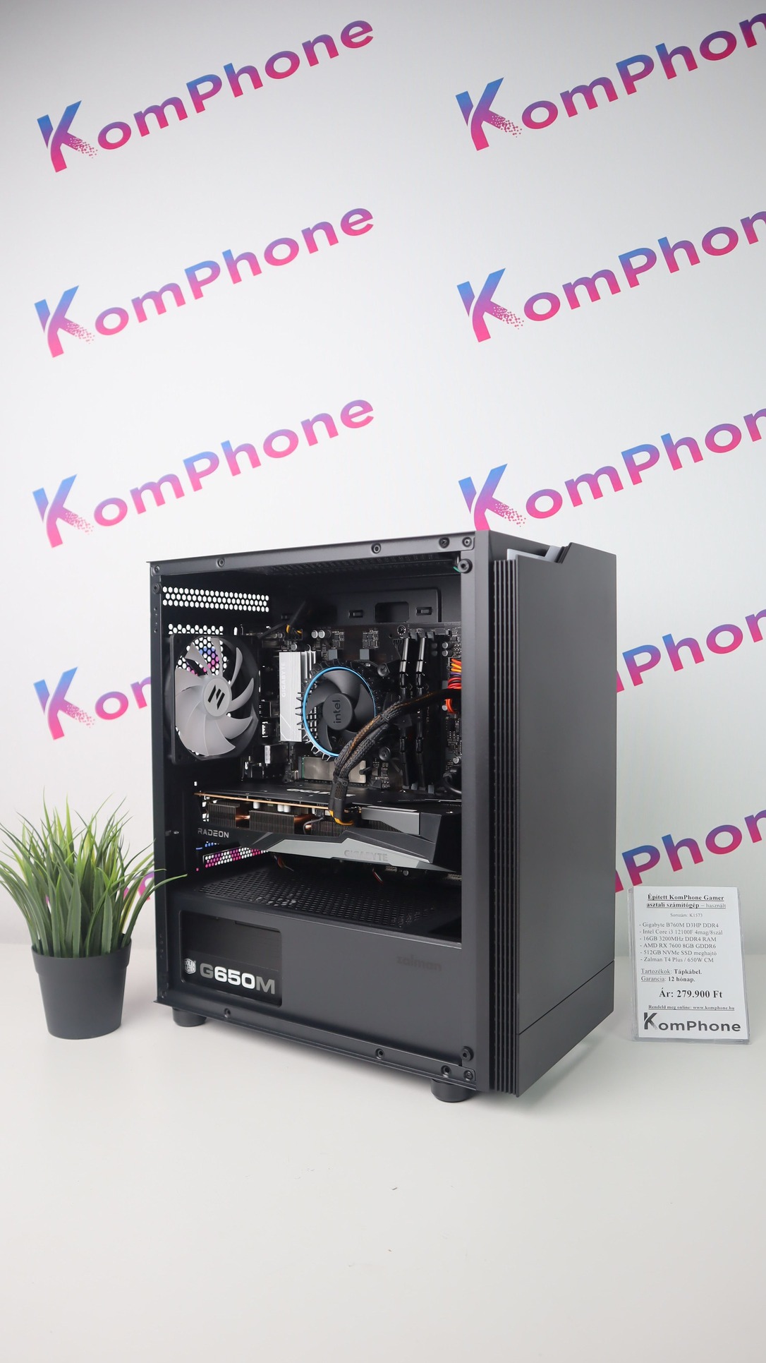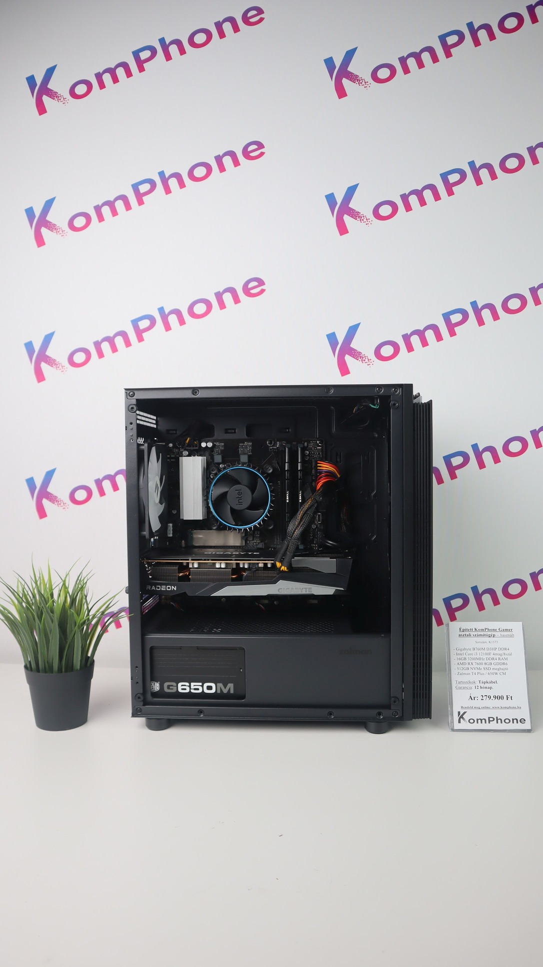 BESZÁMÍTÁS! Gigabyte B760M i3 12100F 16GB DDR4 512GB SSD RX 7600 8GB Zalman T4Plus CoolerMaster 650W