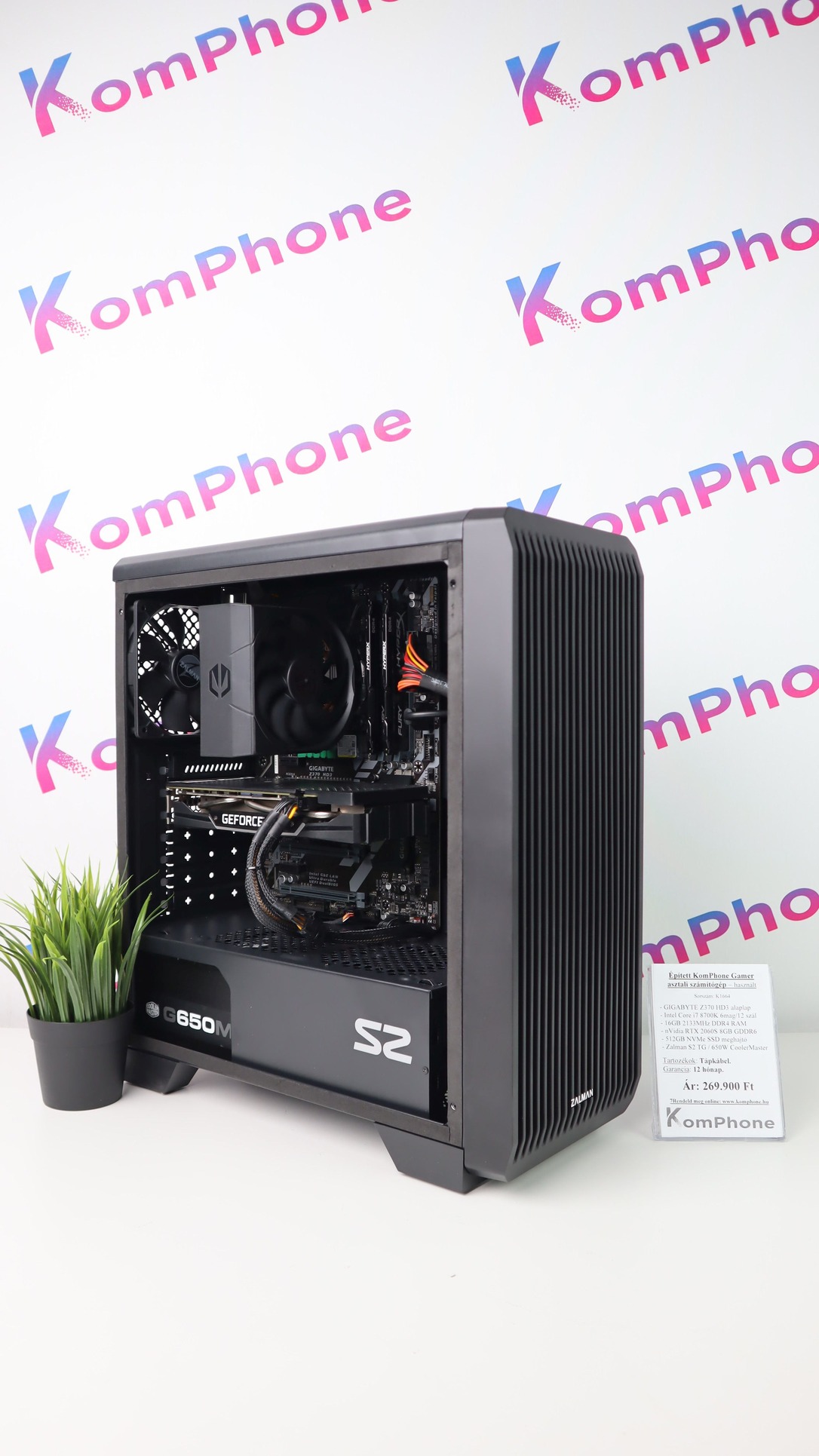 BESZÁMÍTÁS! GIGABYTE Z370 i7 8700K 16GB DDR4 512GB SSD RTX 2060 Super 8GB Zalman S2 TG CM 650W