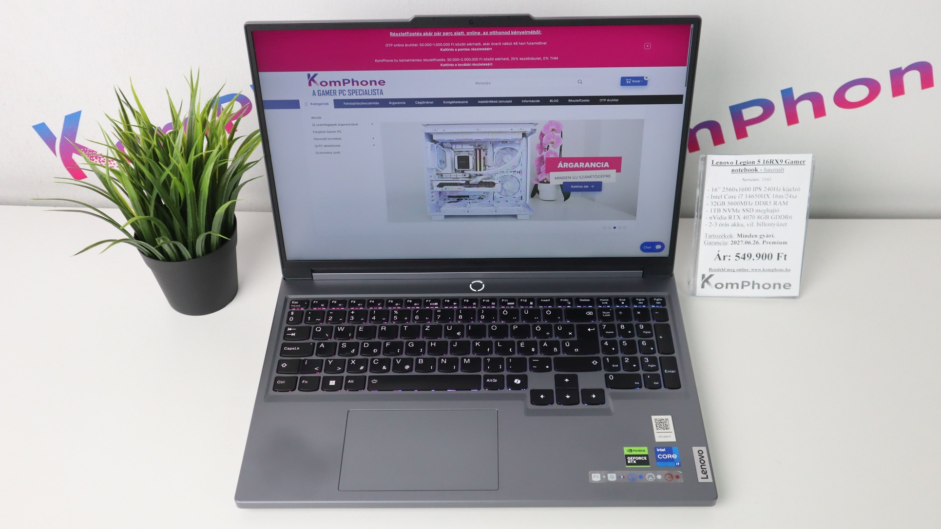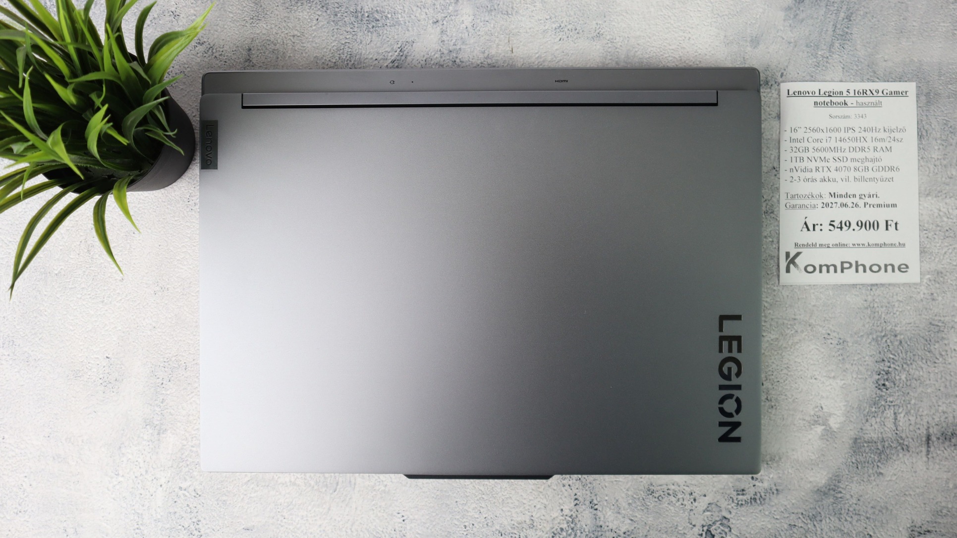 BESZÁMÍTÁS! Lenovo Legion 5 16RX9 Gamer notebook - i7 14650HX 32GB DDR5 1TB SSD RTX 4070 8GB