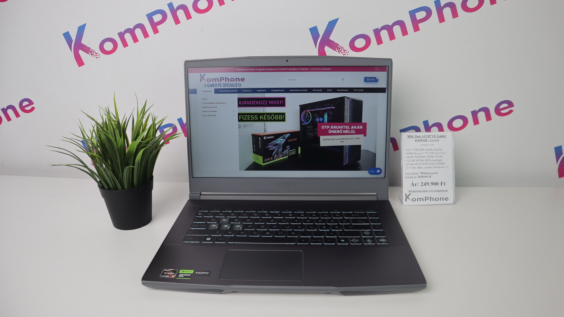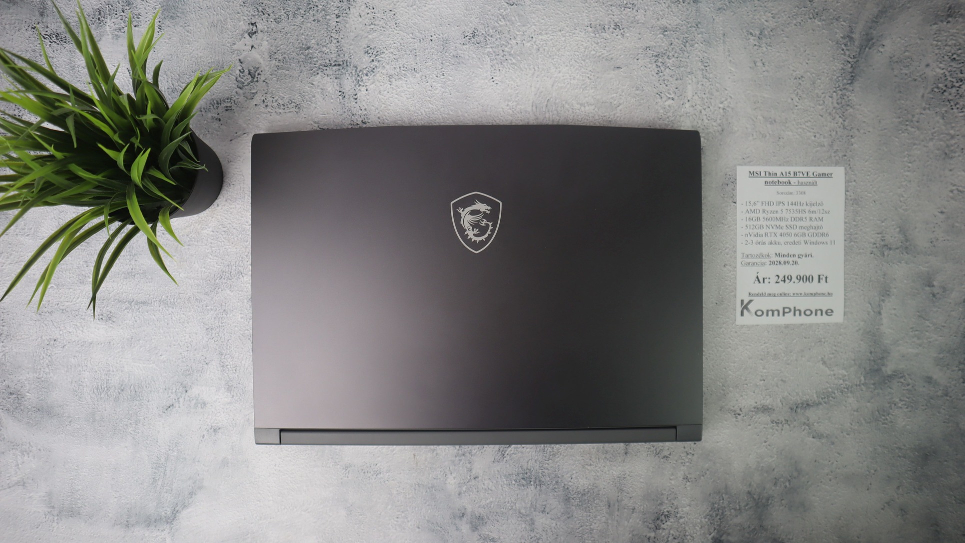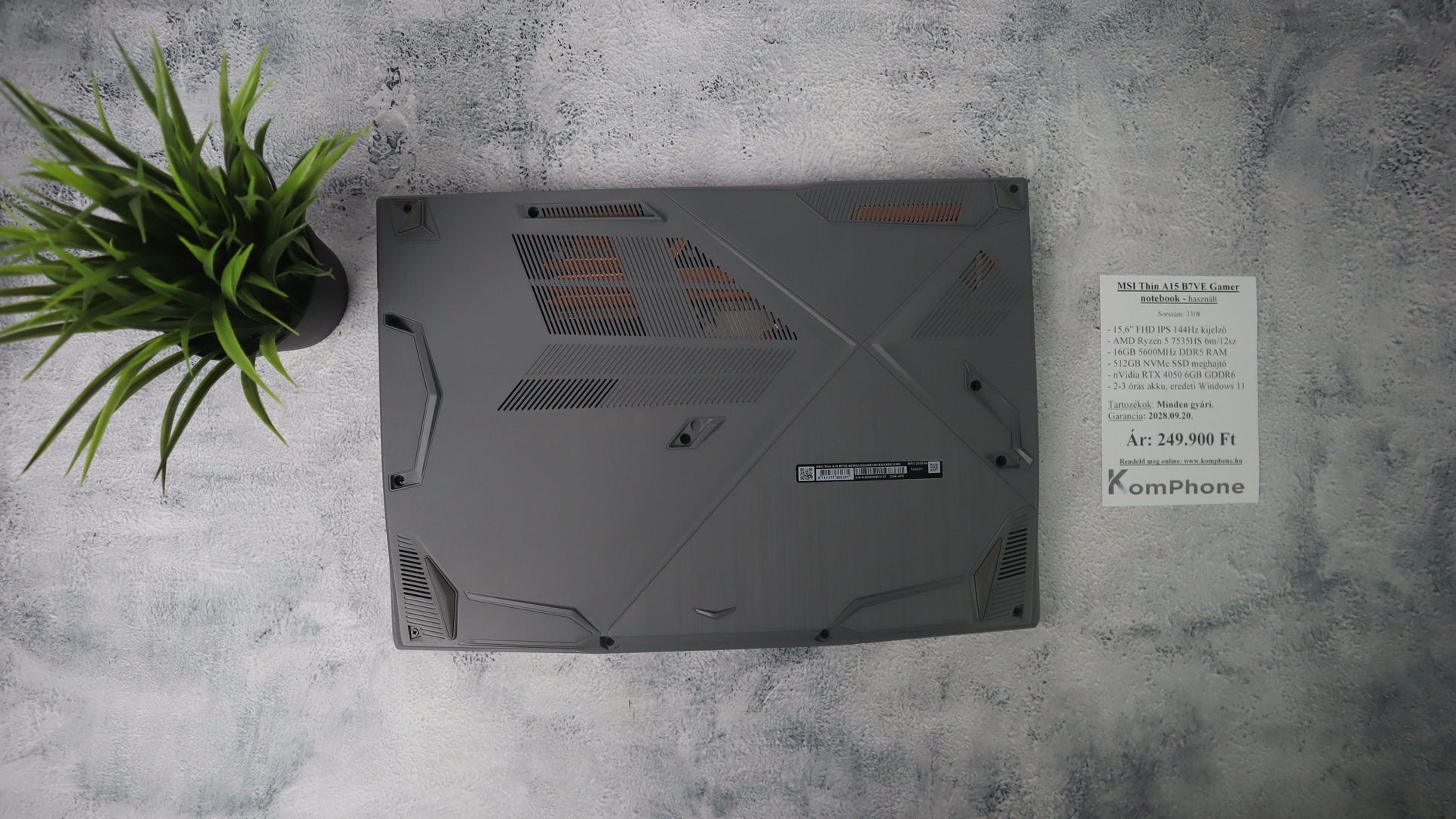 BESZÁMÍTÁS! MSI Thin A15 B7VE Gamer notebook - R5 7535HS 16GB DDR5 512GB SSD RTX 4050 6GB WIN11