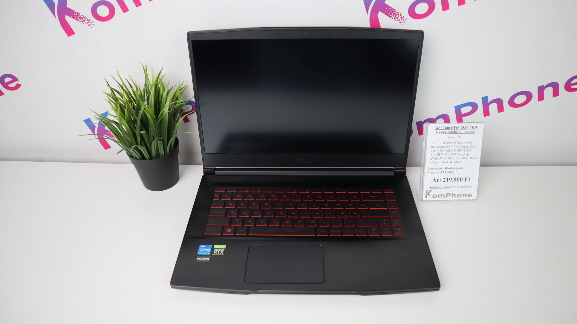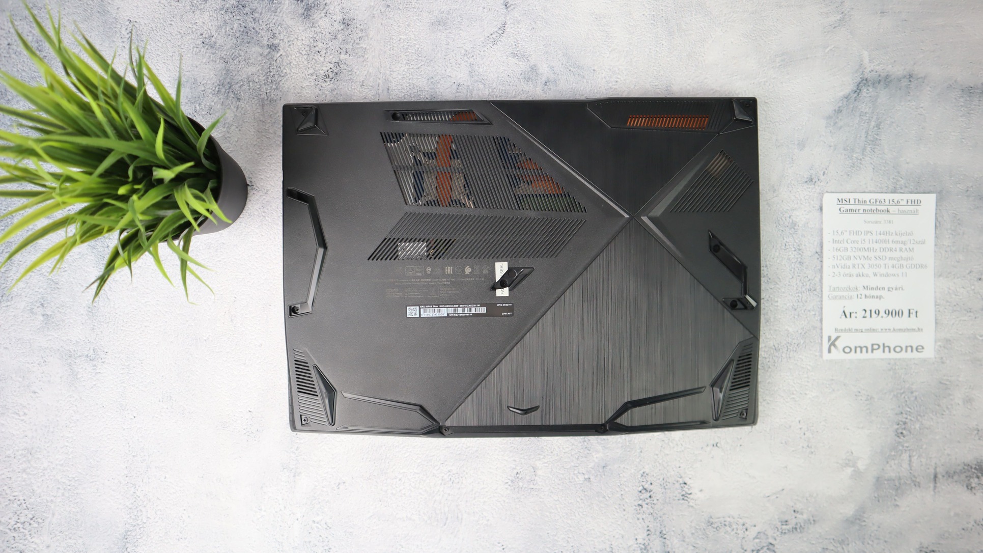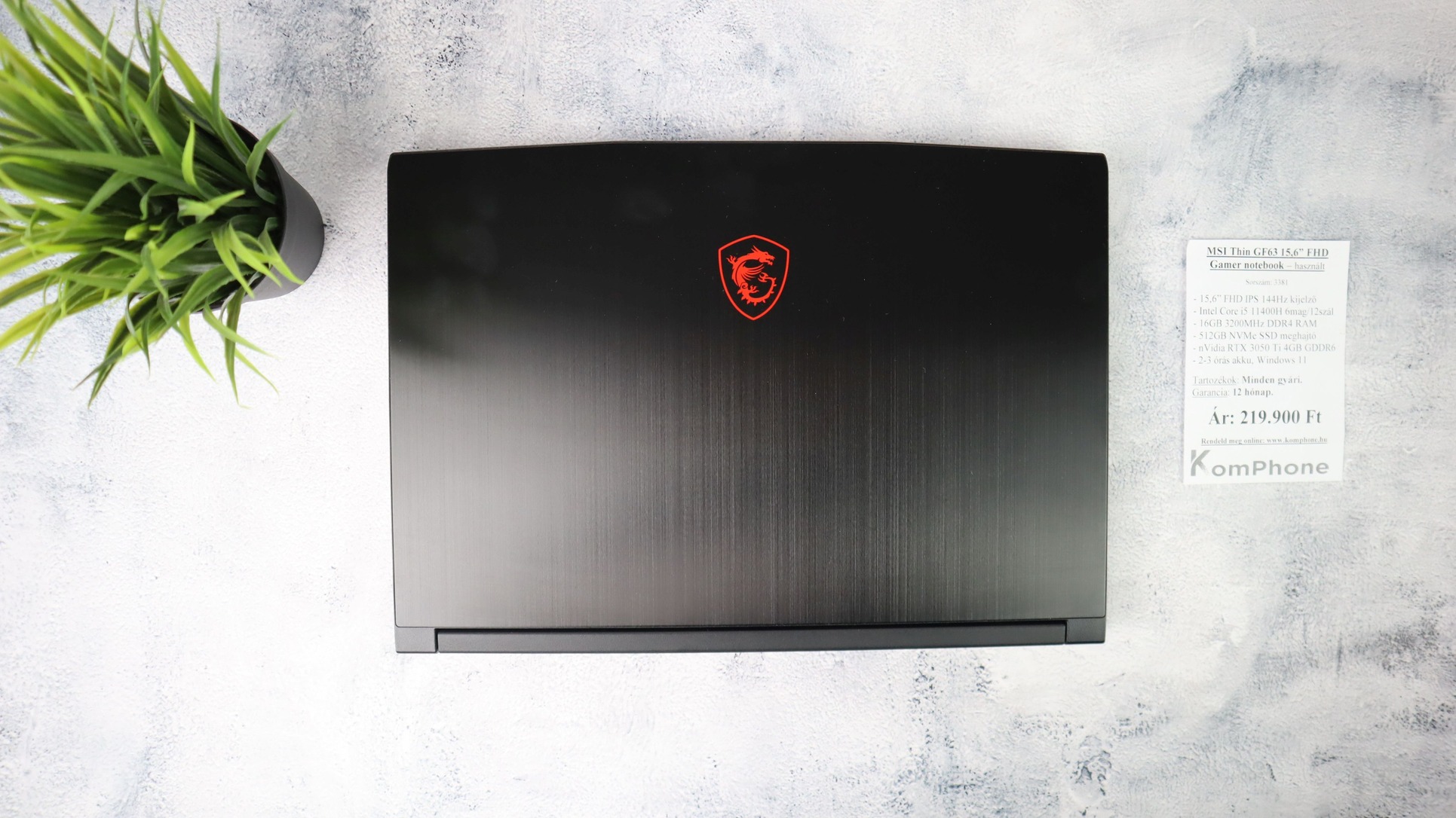 BESZÁMÍTÁS! MSI Thin GF63 15,6 FHD Gamer notebook-i5 11400H 16GB DDR4 512GB SSD RTX 3050 Ti 4GB W11