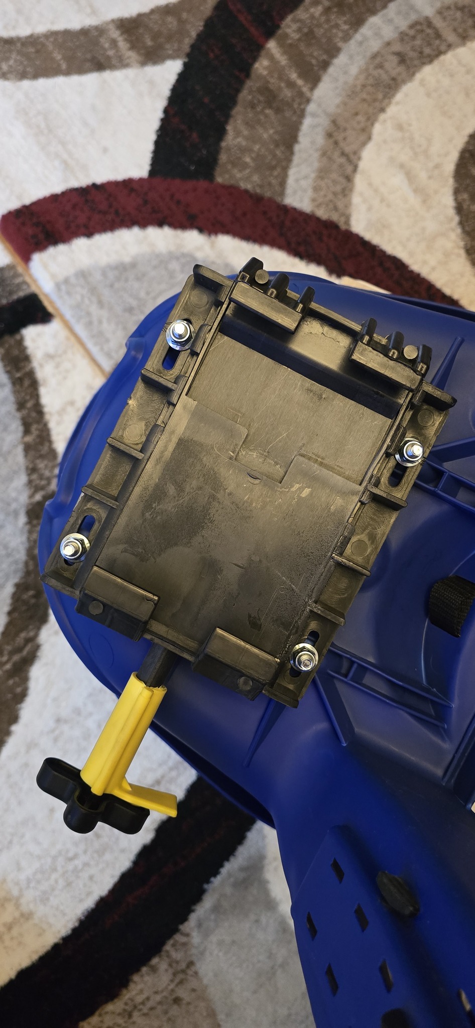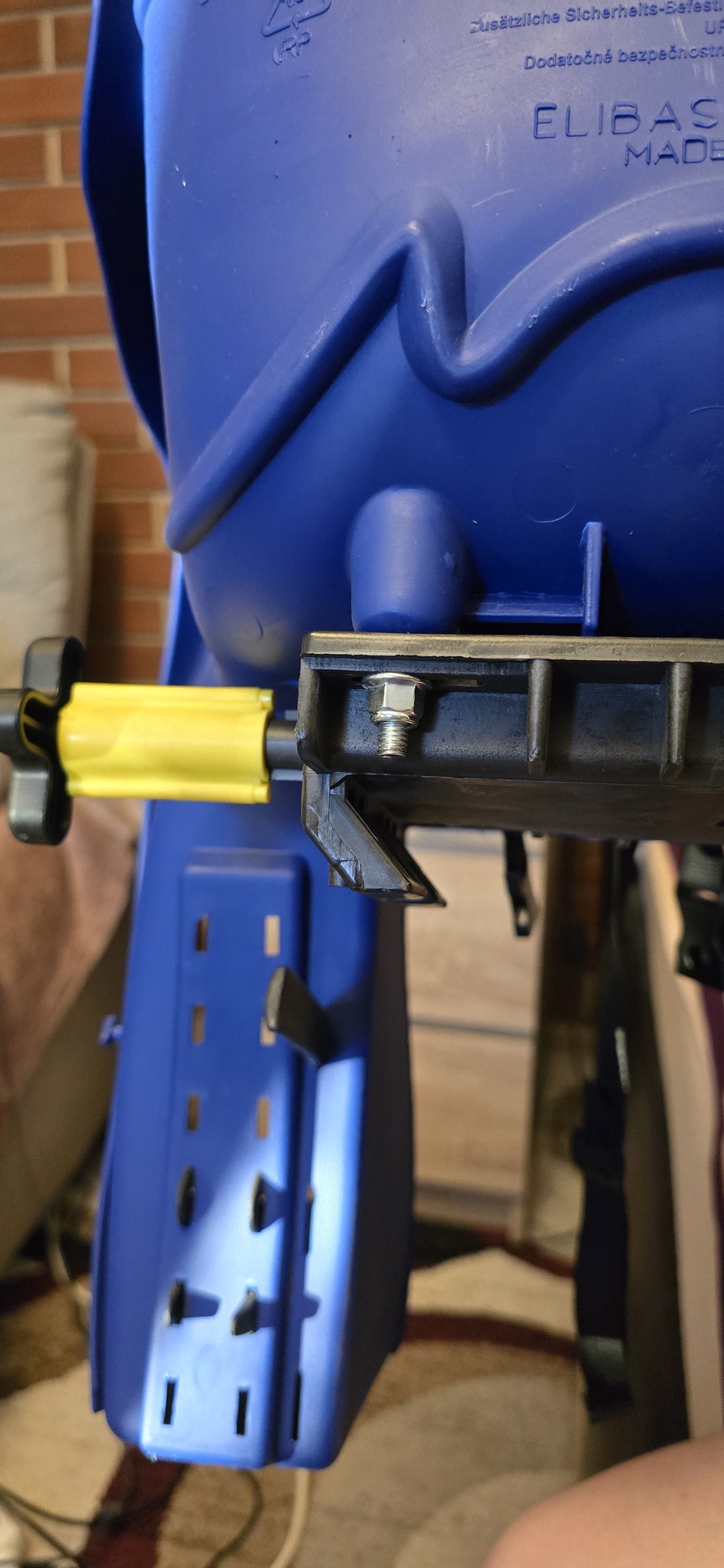 Hátsó csomagtartóra kell rögzíteni, a sárga rögzítővel kell odarögzíteni.