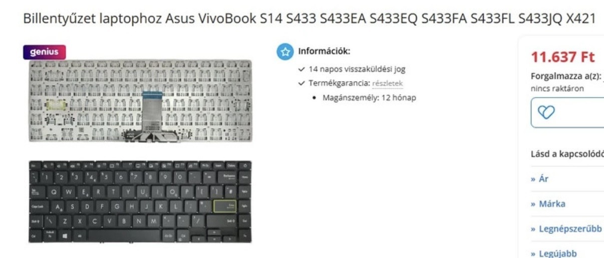 Billentyűzet Asus Vivobookhoz