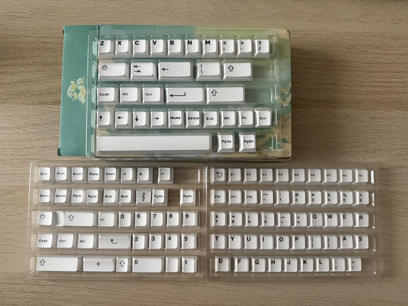 - 2 szett keycap-et ANSI szabványú kiosztással. Hiánytalanul megvan mindegyik szett összes darabja, legtöbb billentyűzet méretet támogató gombokkal pl több méretű CTRL, SHIFT stb.