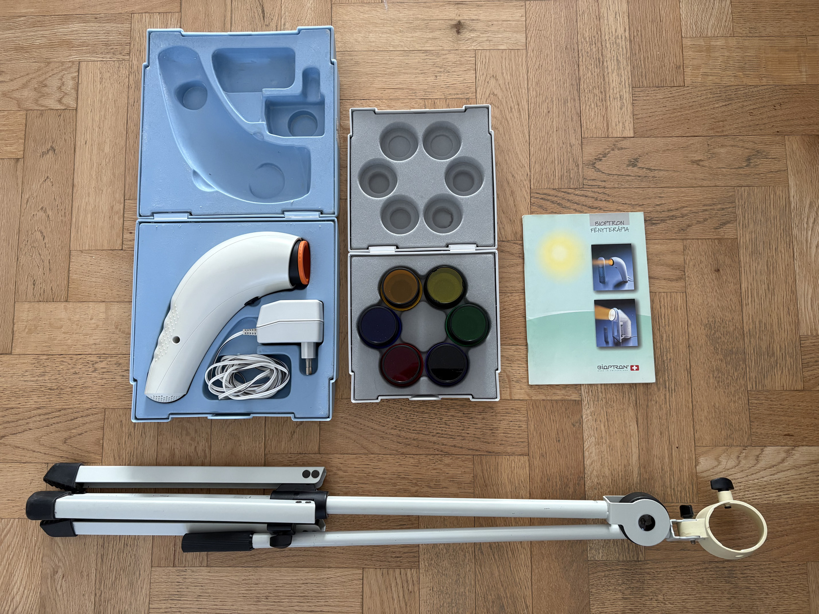 Bioptron lámpa, színterápia (7db), állvány