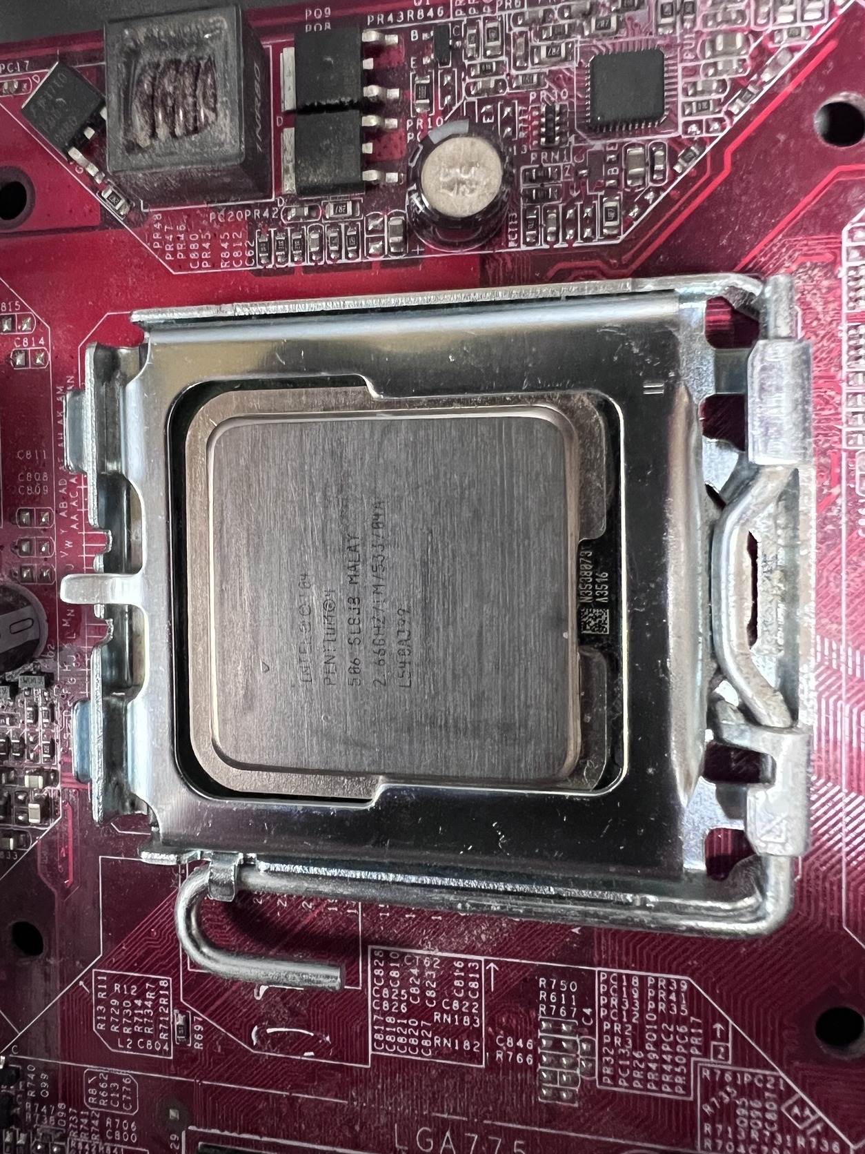 Eladó a képen látható alaplap + Intel P4 506 Cpu + hűtő + hátlap --->775/AGP