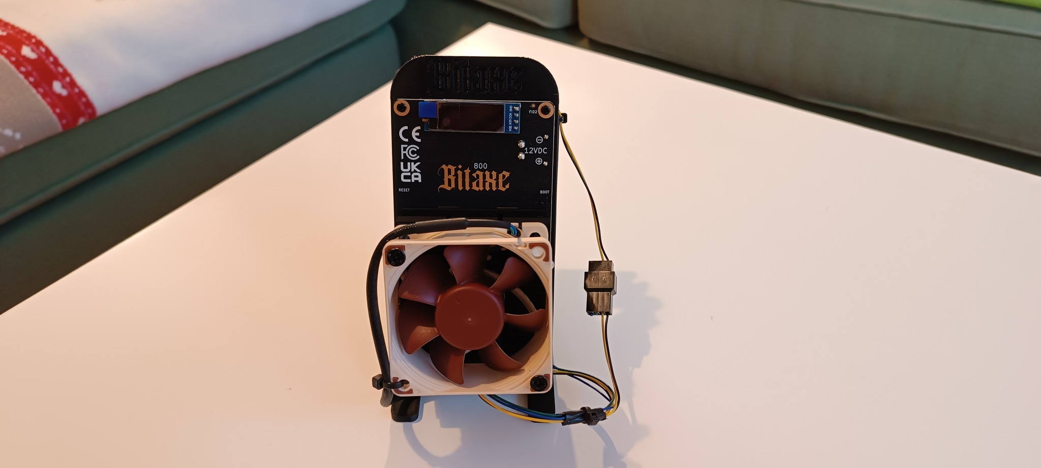 Eladó a képen látható Bitaxe GT 800 2.4Th/s bányász. Első hűtése cserélve eredeti noctuára. Hátsó hűtése külön szabályozható a kék potméterrel. Eredeti ventilátorát adom hozzá.