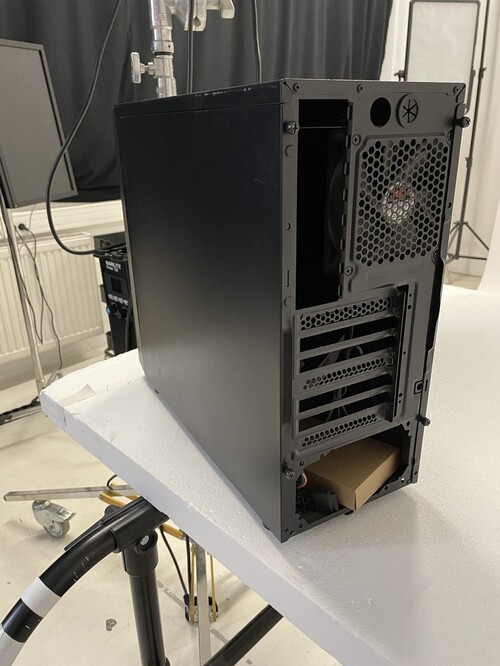 Az egyik lába sajnos nincs meg, illetve a hátán a PCI slot takarók egy része, és a vízhűtés kivezetésének az egyik gumija nincs meg.