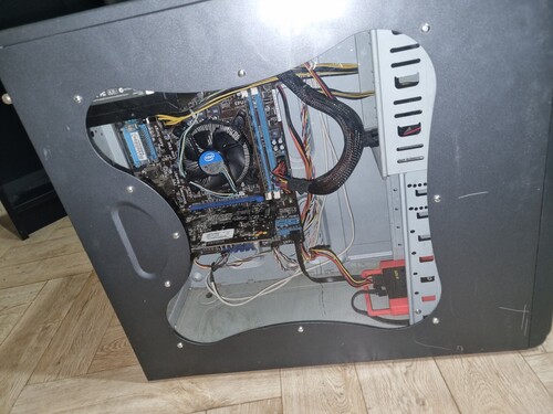 Nem fiatal, kicsit kopottas és karcos, de nagyon masszív erős foggantyús kialakítású gépház. Nagy tágas és könnyen bővíthető, hordozható, plexi oldalas.