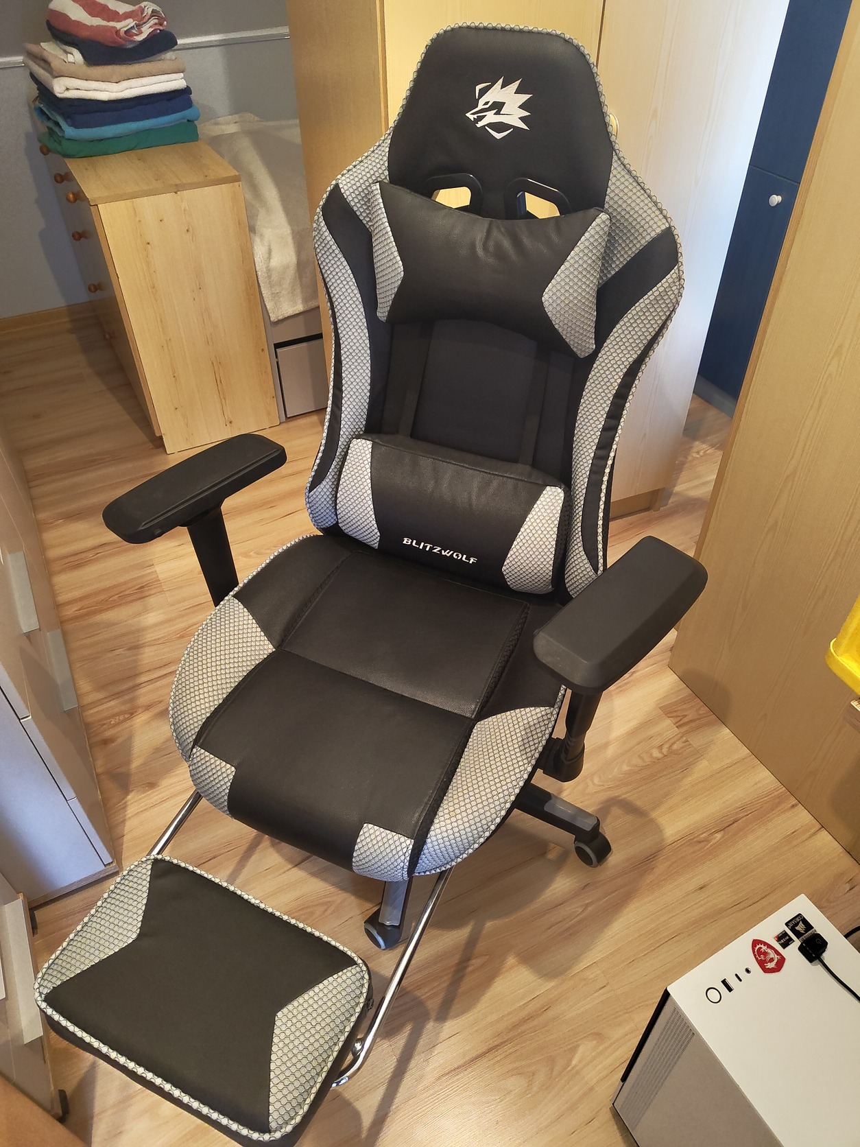 Bangoodról rendelt, jó állapotban lévő Blitzwolf szék. Főleg a sok funkció és az ár volt a mérvadó a vásárláskor.