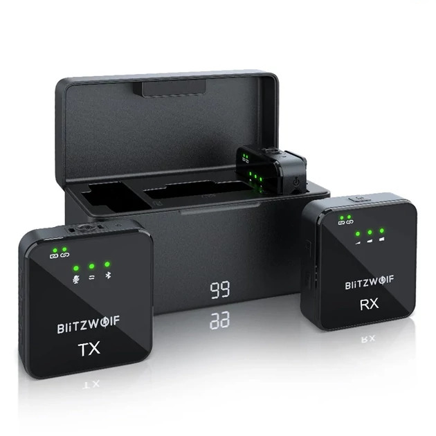 BlitzWolf BW-SX63 vezeték nélküli csíptetős mikrofon akkumulátoros töltőtokkal (2 db mikrofonnal) eladó.