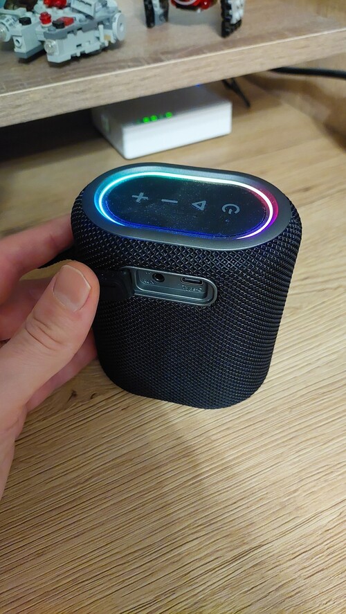A specifikációi alapján becsapós lehet a kicsike méret, a BlitzWolf elég rendesen felturbózta a legújabb hangszóróját. Nagyon kompakt a 9,9×6,9×10,4 centiméteres méretével és a 425 grammjával. Tényleg nagyon könnyen hordozható, még egy fekete fogópántot is kapott, így bárhová magaddal viheted, ahol szeretnéd a hangulatot minőségi hangzású zenével feldobni. Az egyszerű fekete kinézetét RGB fényekkel dobták fel, amik a zene ütemére változnak, így egy igazi vizuális élménnyé képes válni, garantáltan a házi bulik sztárja lesz.
