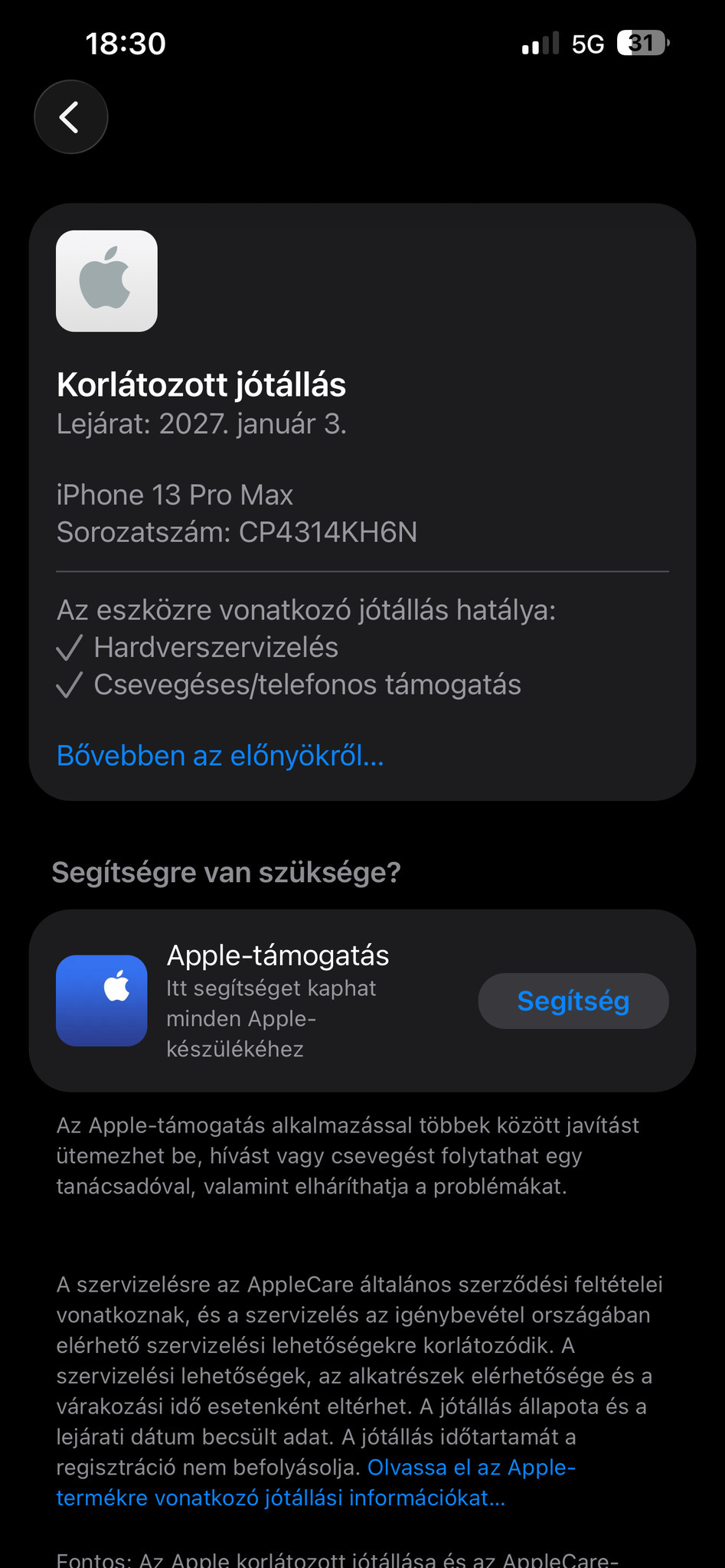 Apple Garancia van rá: 2027.01.03-ig utána ha ez lejár még 2 év garancia van rá, így összesen 3 év garanciával rendelkezik!