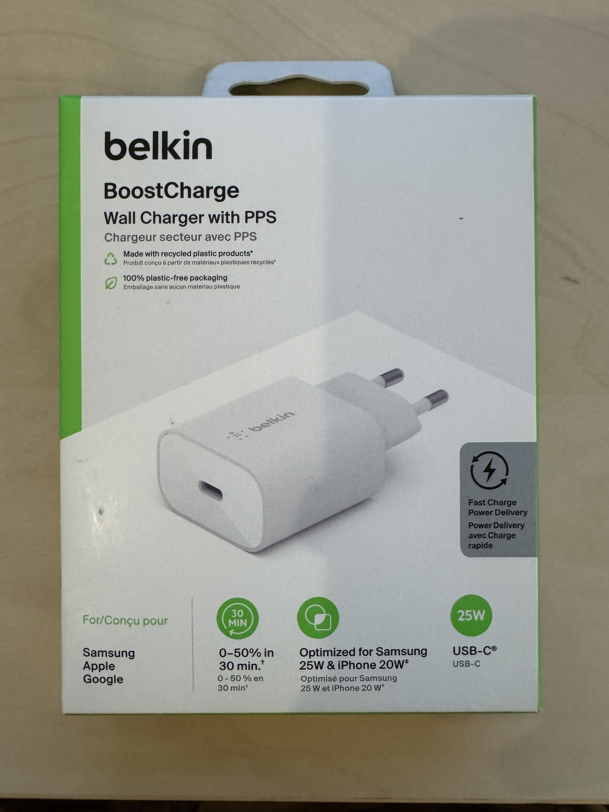 Eladó egy darab bontatlan Belkin BoostCharge PD PPS USB-C 25W hálózati töltő.